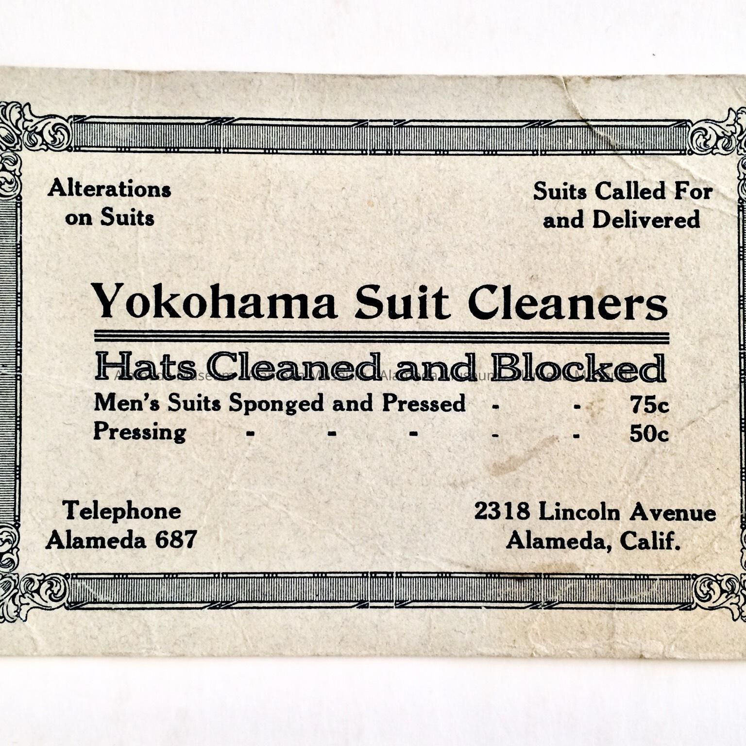 Advertising ink blotter for 'Yokohama Suit Cleaners', c. 1920Entry/Object ID