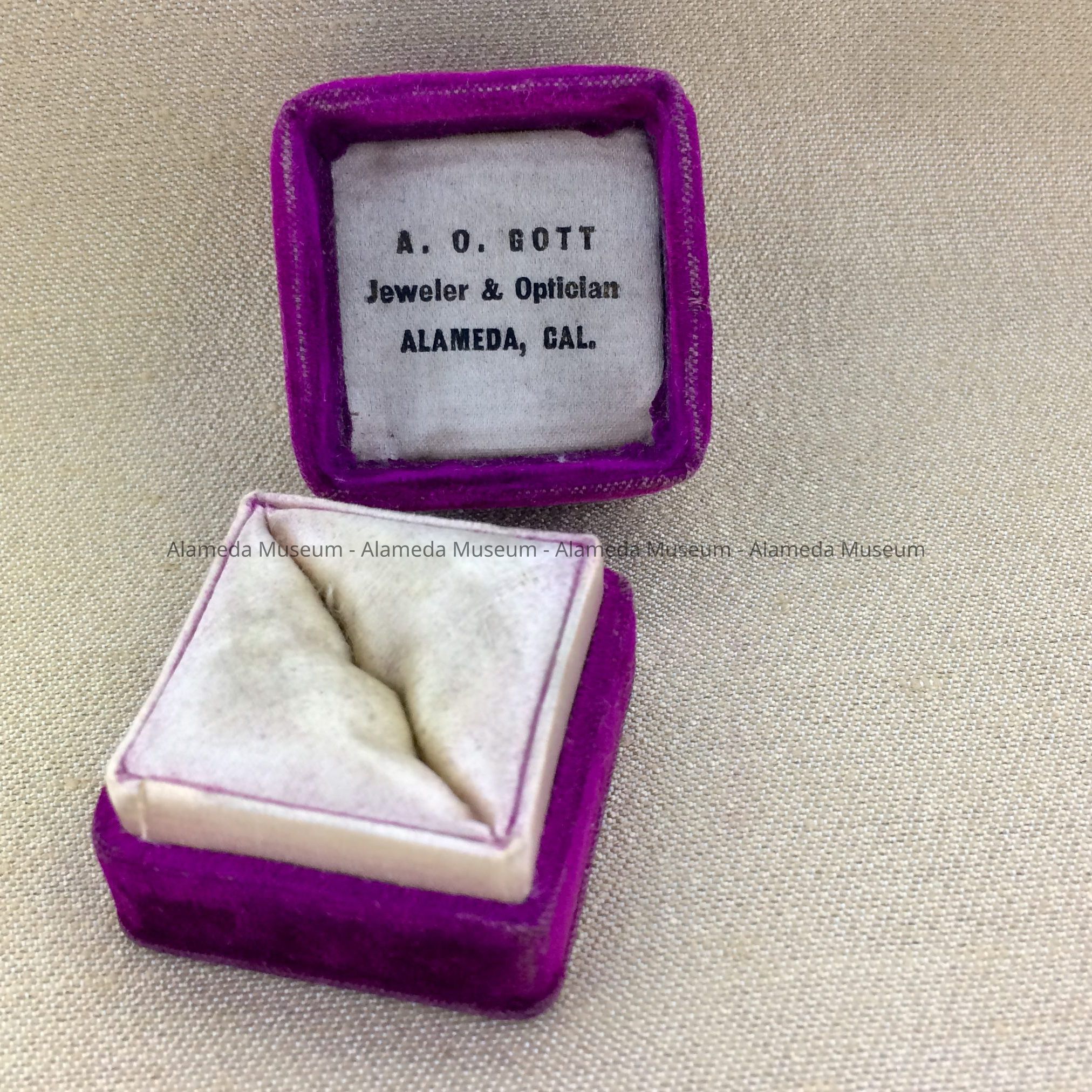 In the lid of box is printed A.O. Gott Jeweler and Optician Alameda, California.