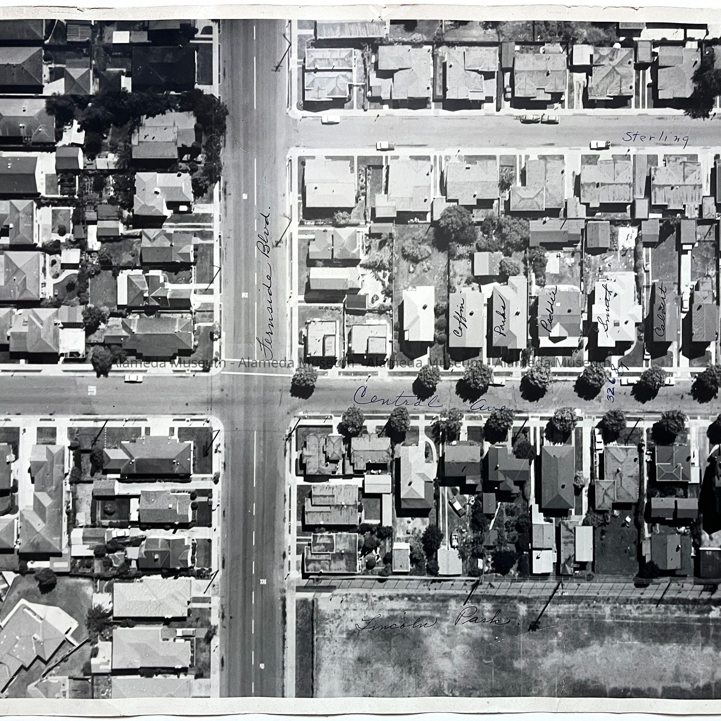 History of Object: Photo, aerial view, 3200 block Central Avenue, Fernside Blvd, and Lincoln Park, circa 1960.