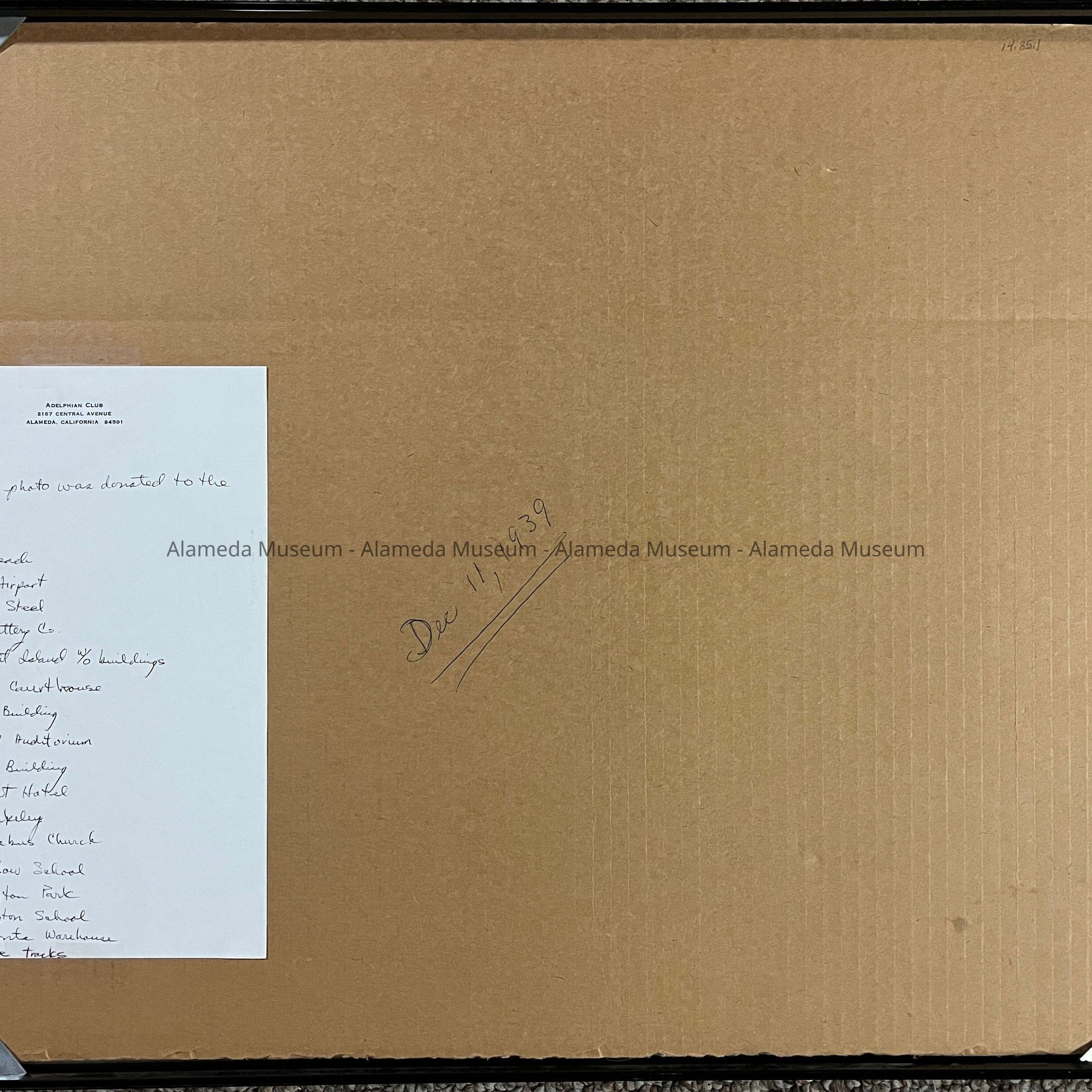 AERIAL PHOTO OF ALAMEDA AND OAKLAND, TAKEN ON DECEMBER 11, 1939. THE VIEW OF ALAMEDA APPEARS TO BE A SECTION WEST OF SHERMAN STREET WHICH WOULD BECOME US NAVAL AIR STATION. INCLUDED IN THE PHOTO IS NEPTUNE BEACH, POSEY TUBE, AND CLARK'S POTTERY, ETC.