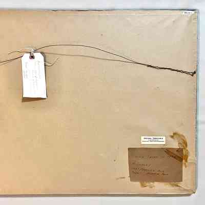 DESCRIPTION: PHOTOGRAPH UNDER GLASS IN AN EBONIZED WOODEN FRAME. ON THE REVERSE SIDE OF THE PHOTOGRAPH, PASTED TO THE DUST PAPER BACKING, IS A PRINTED LABEL STATING, "ENCINAL TERMINALS ON SAN FRANCISCO BAY WHERE RAILS, TRUCKS, AND STEAMERS MEET."