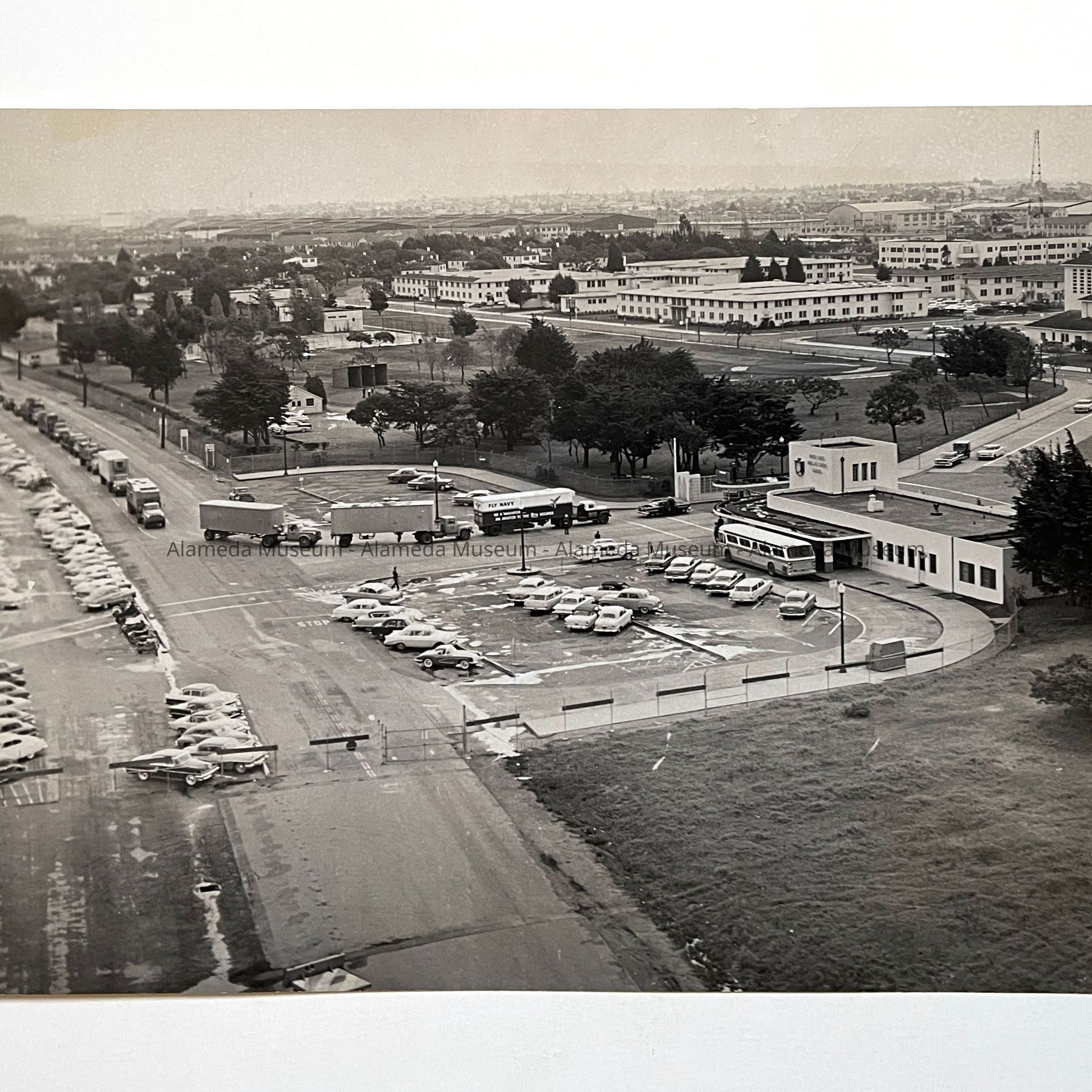 Aerial photo of main entrance, Alameda Naval Air Station, 1961Entry/Object ID