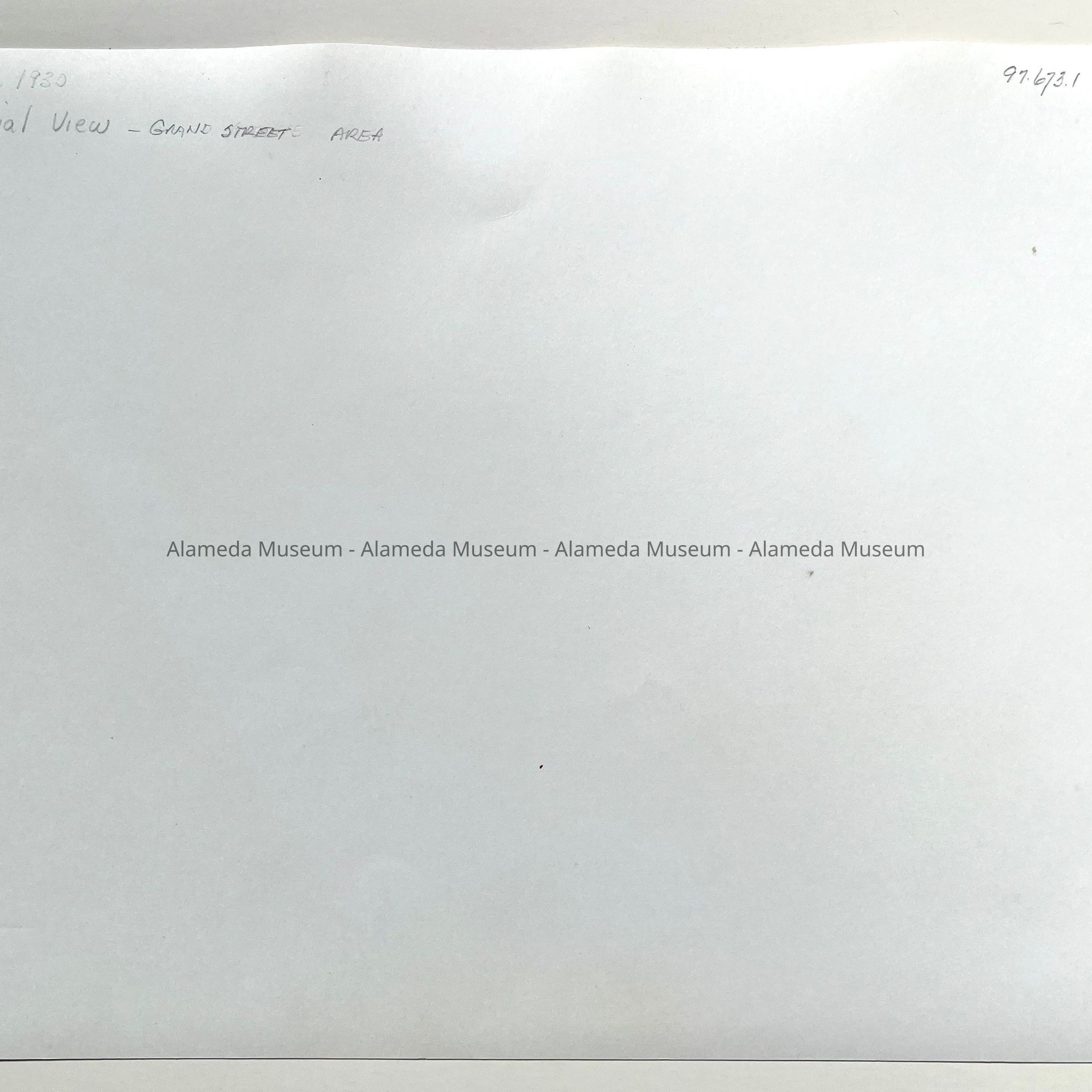 History of Object: Aerial view of the "Gold Coast" area of Alameda, showing Grand Street and the pier at the end of it leading to the Encinal Yacht Club (the latter not visible in the photo).