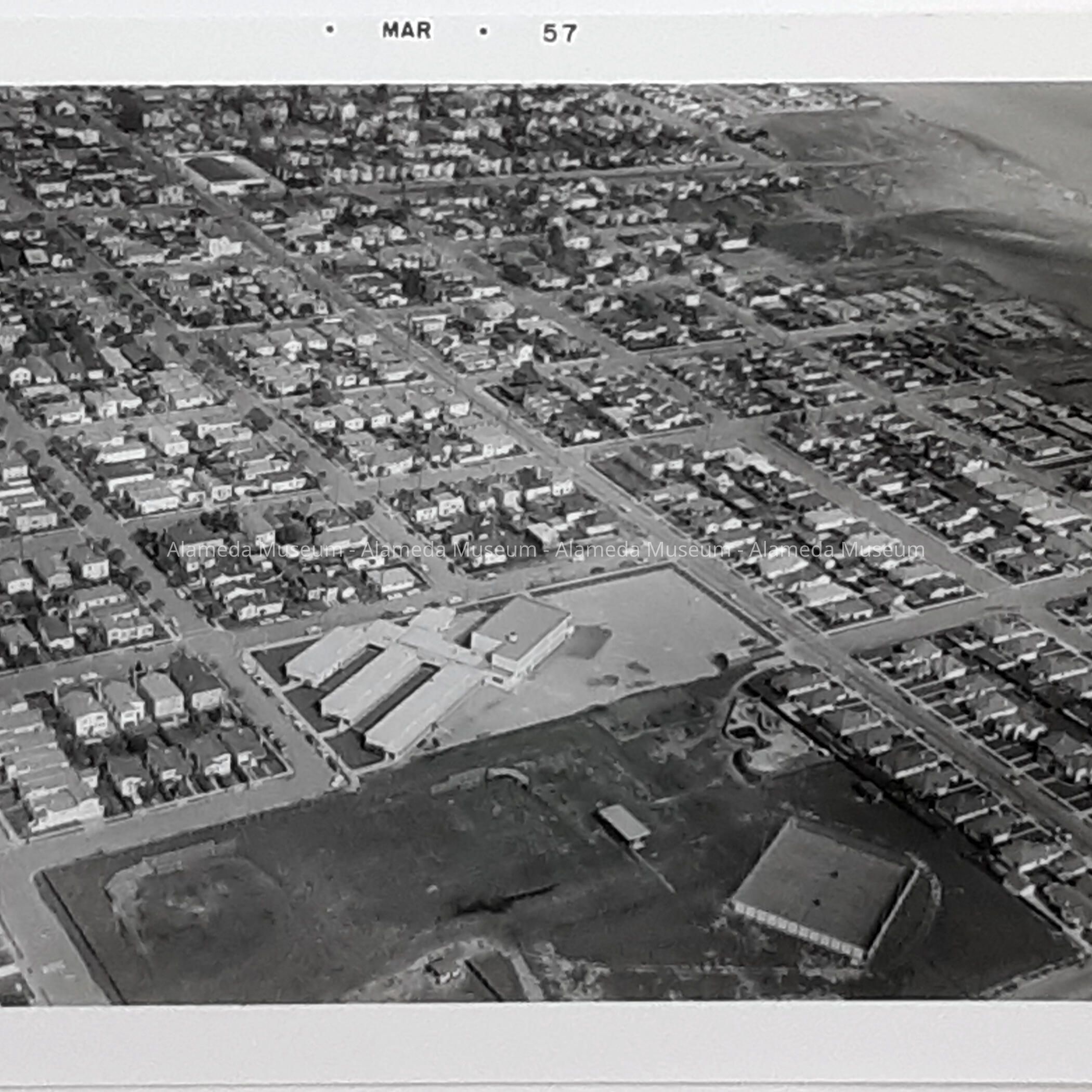 History of Object: Three aerial views, each different, of the East End of Alameda, focussing upon the Otis School and its surrounding area.
