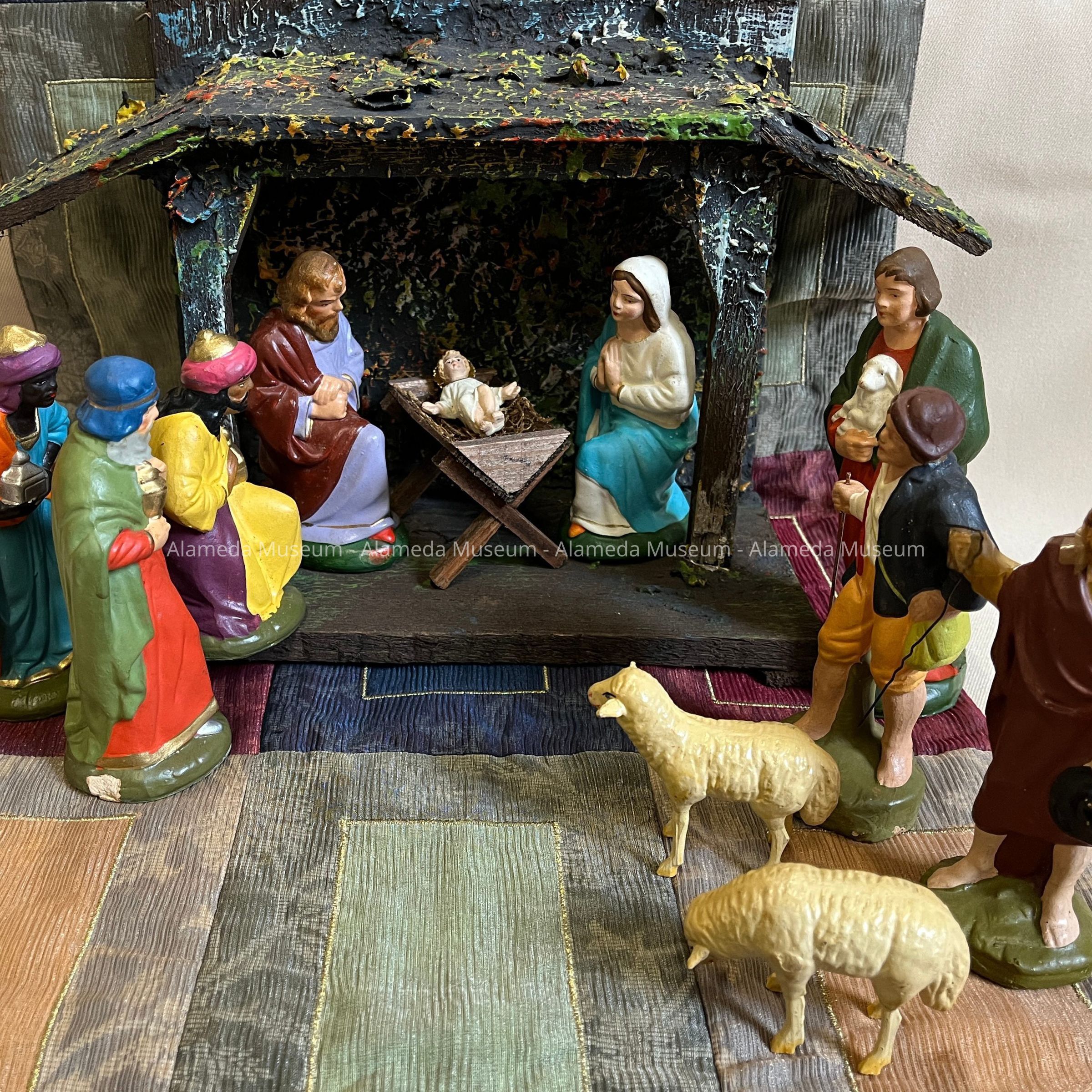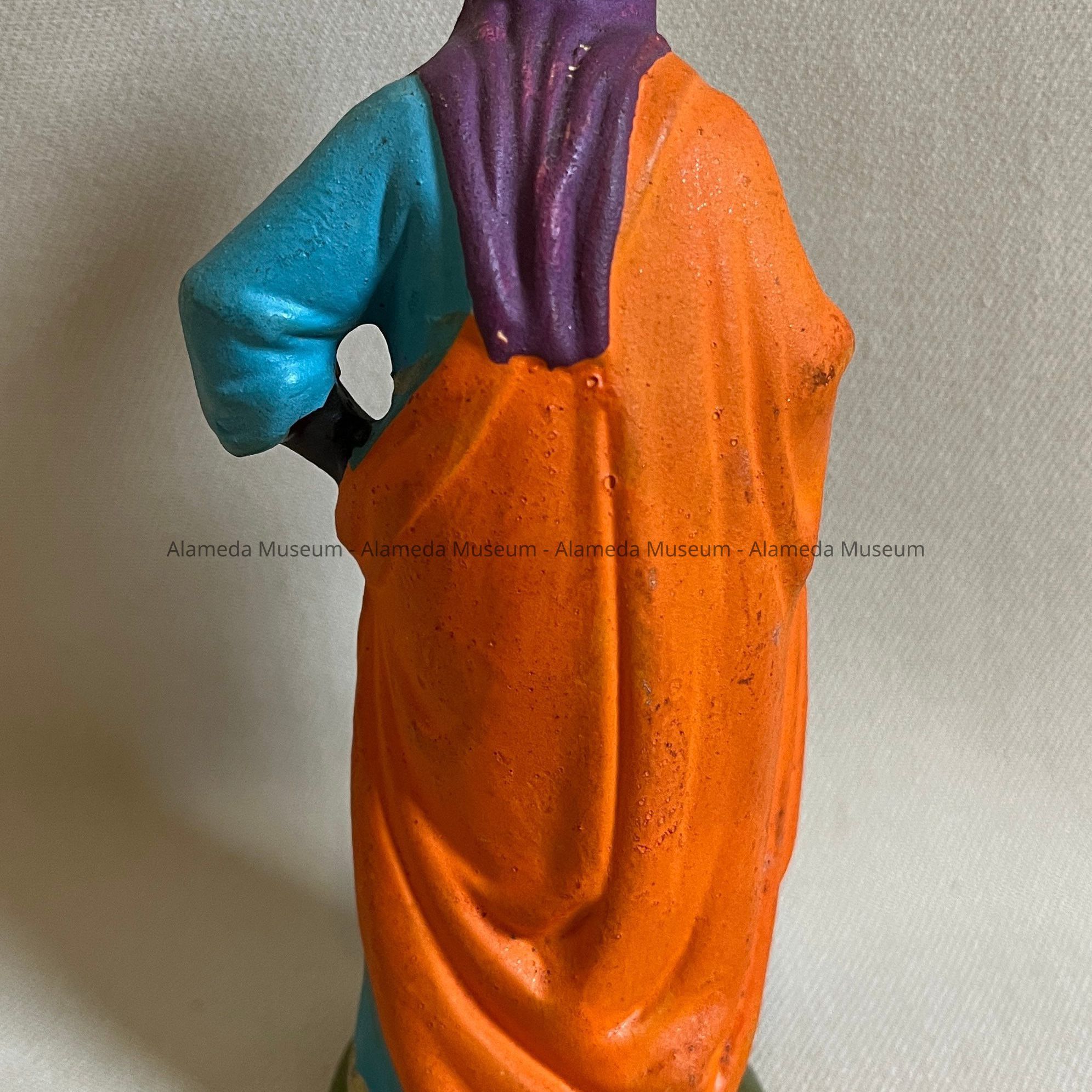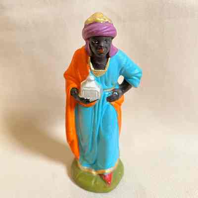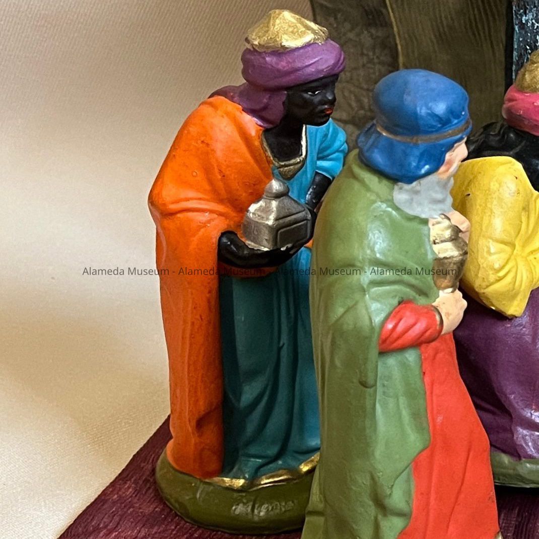 History of Object: Figurine of a Wise Man, according to German tradition, one representing youth, Africa, and bringing gold. Part of a Manger or Nativity Scene of the Martin Family, who came to Alameda in the early 1900s.