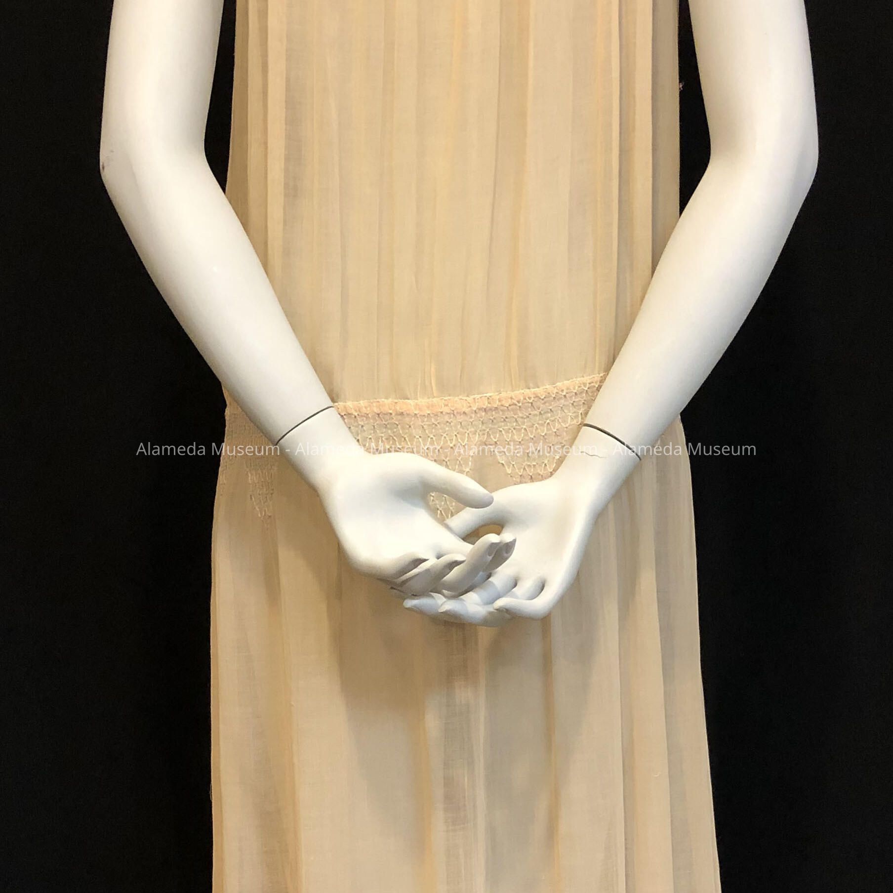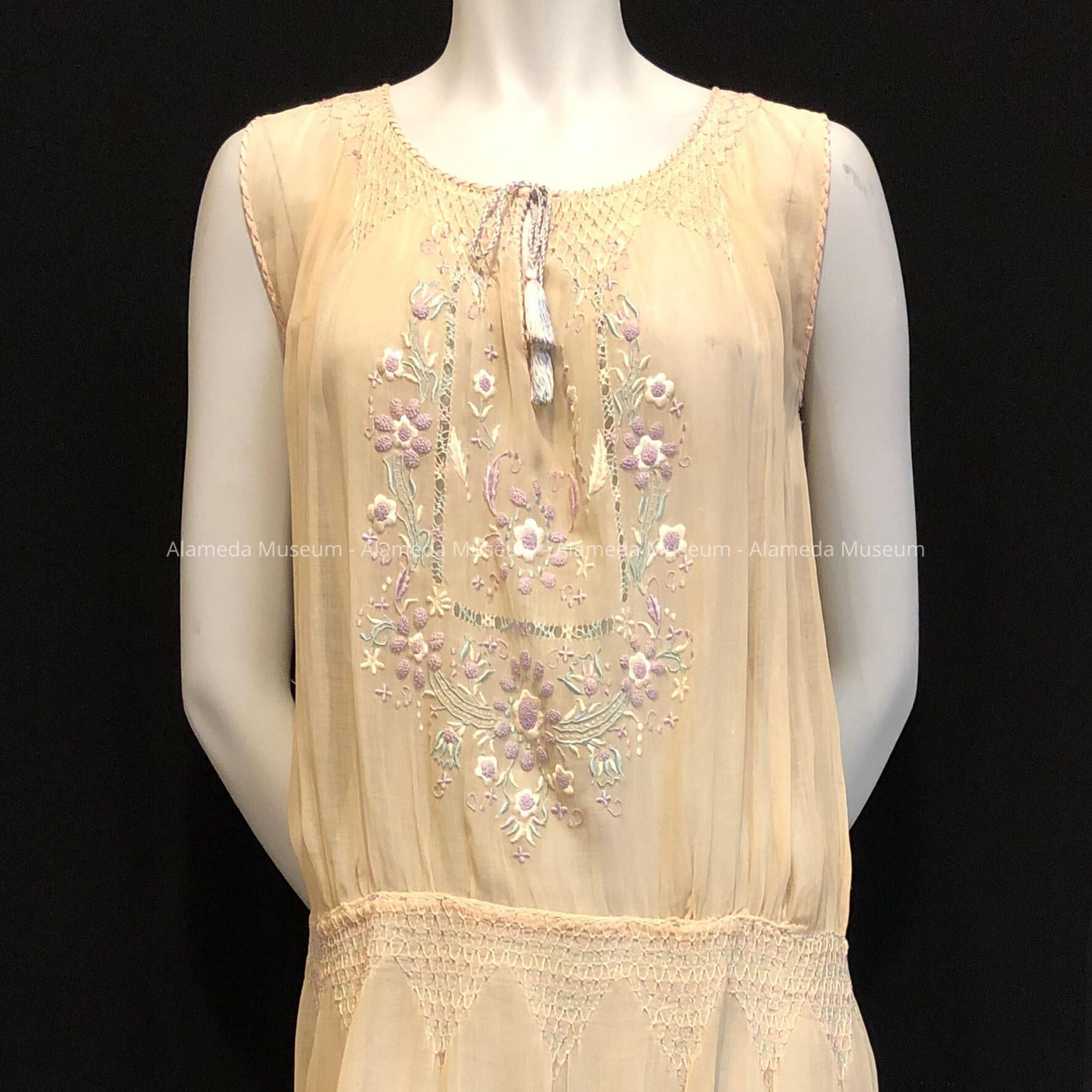 Afternoon dress of peach voile with embroidery, c. 1930Entry/Object ID