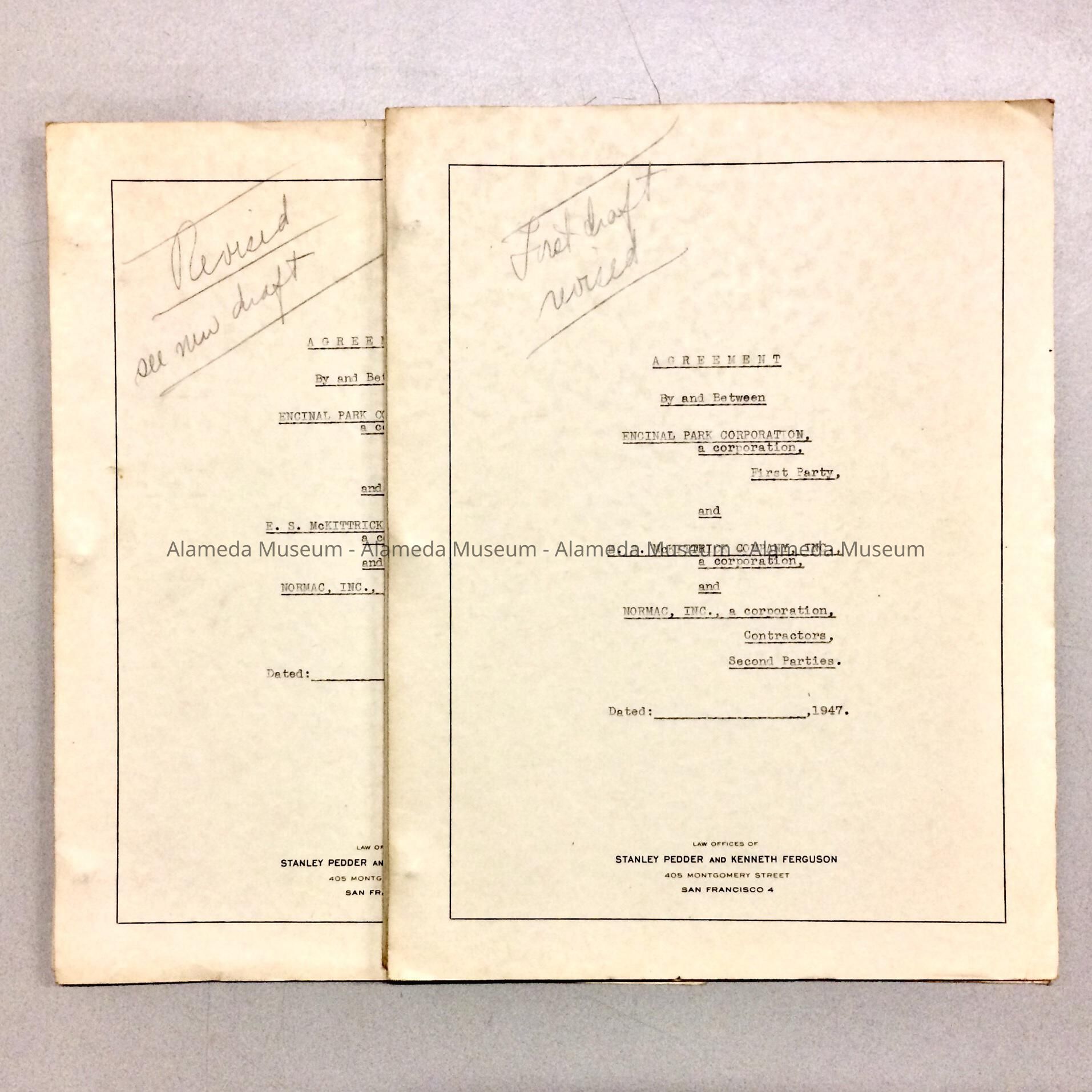 AGREEMENT BETWEEN ENCINAL PARK CORPORATION AND THE E S McKITTRICK COMPANY AND NORMAC, INC., WITH THE YEAR "1947" FOR WORK TO BE ACCOMPLISHED ON A PROPOSED RESIDENTIAL TRACT ON BAY FARM ISLAND, 1947.