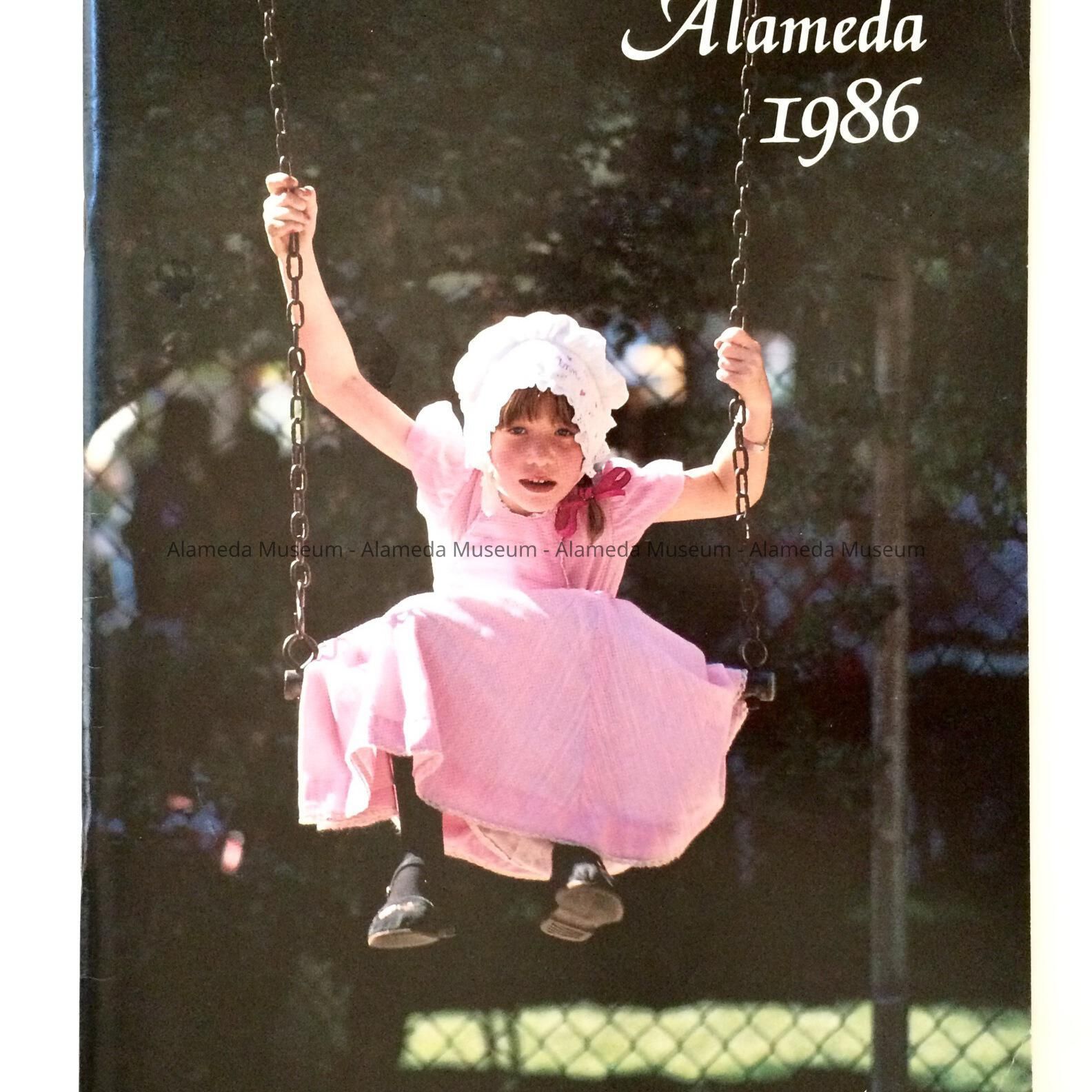 A BOOKLET, WITH ILLUSTRATED COVER IN COLOR, DEPICTING A LITTLE GIRL SWINGING. CAPTION READS, "ALAMEDA 1986."