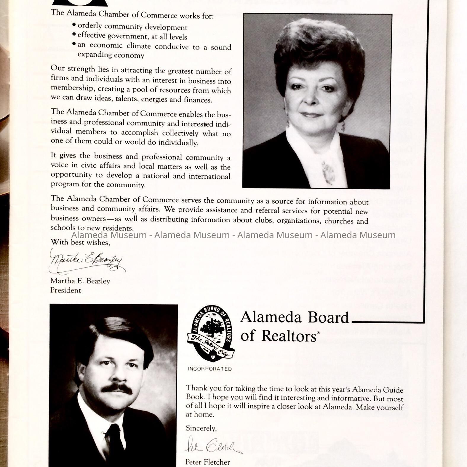 A BOOKLET ISSUED BY THE ALAMEDA CHAMBER OF COMMERCE, ENTITLED, "ALAMEDA 1986." ITS HISTORIC SECTION INCLUDES A PHOTOGRAPH OF THE ALAMEDA MUSEUM AT ITS SECOND LOCATION AT 1327 OAK STREET, ALAMEDA. THE BOOKLET ALSO LISTS MERCHANTS OF THE PERIOD.