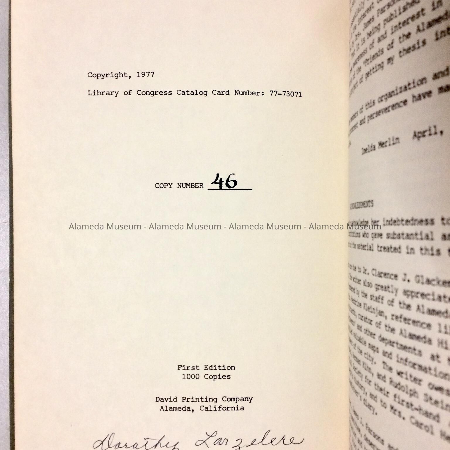 'Alameda, a Geographical History', by Imelda Merlin, signed, 1st and 3rd editions, 1977Entry/Object ID
