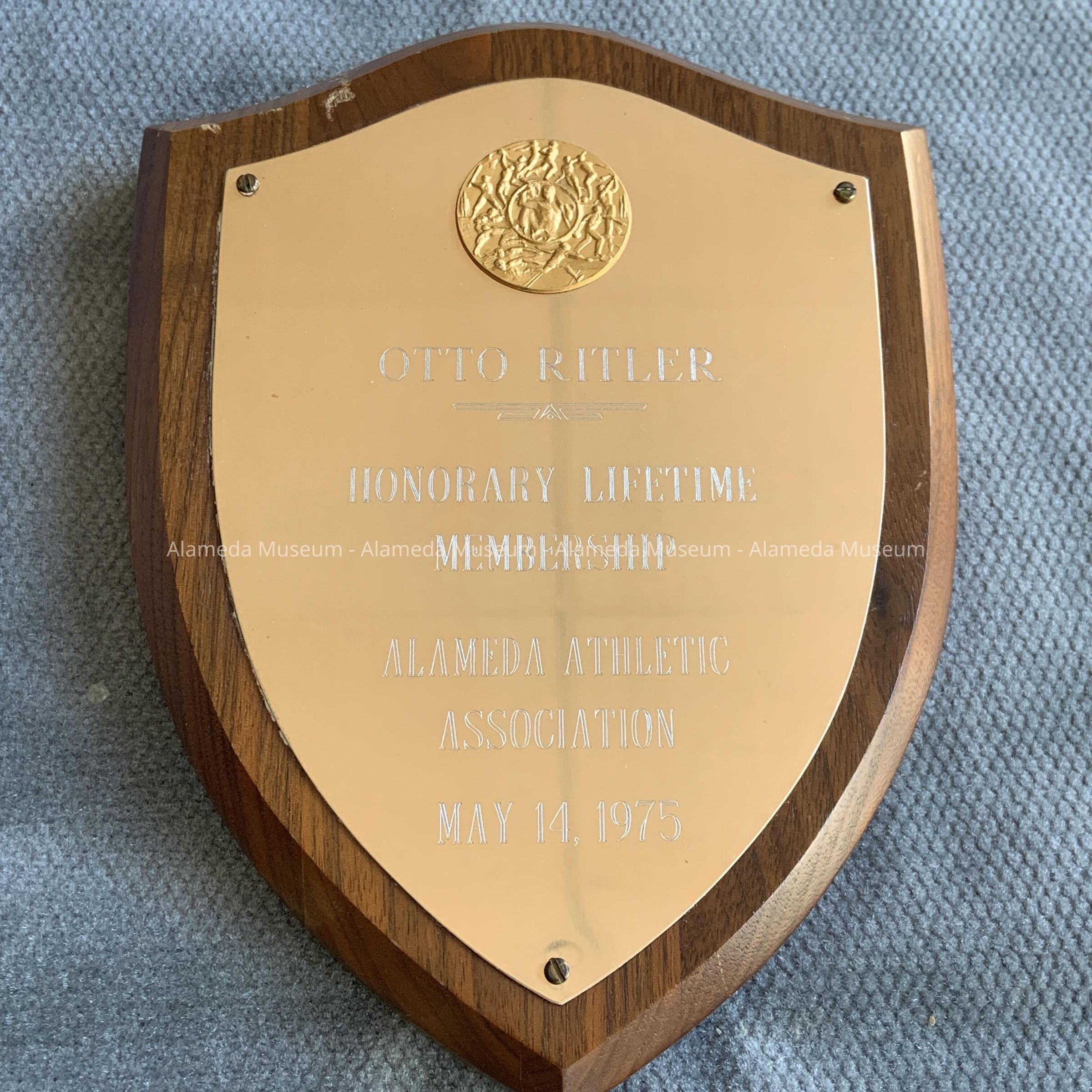 Alameda Athletic Association Lifetime membership Plaque awarded Otto Rittler, 1975Entry/Object ID