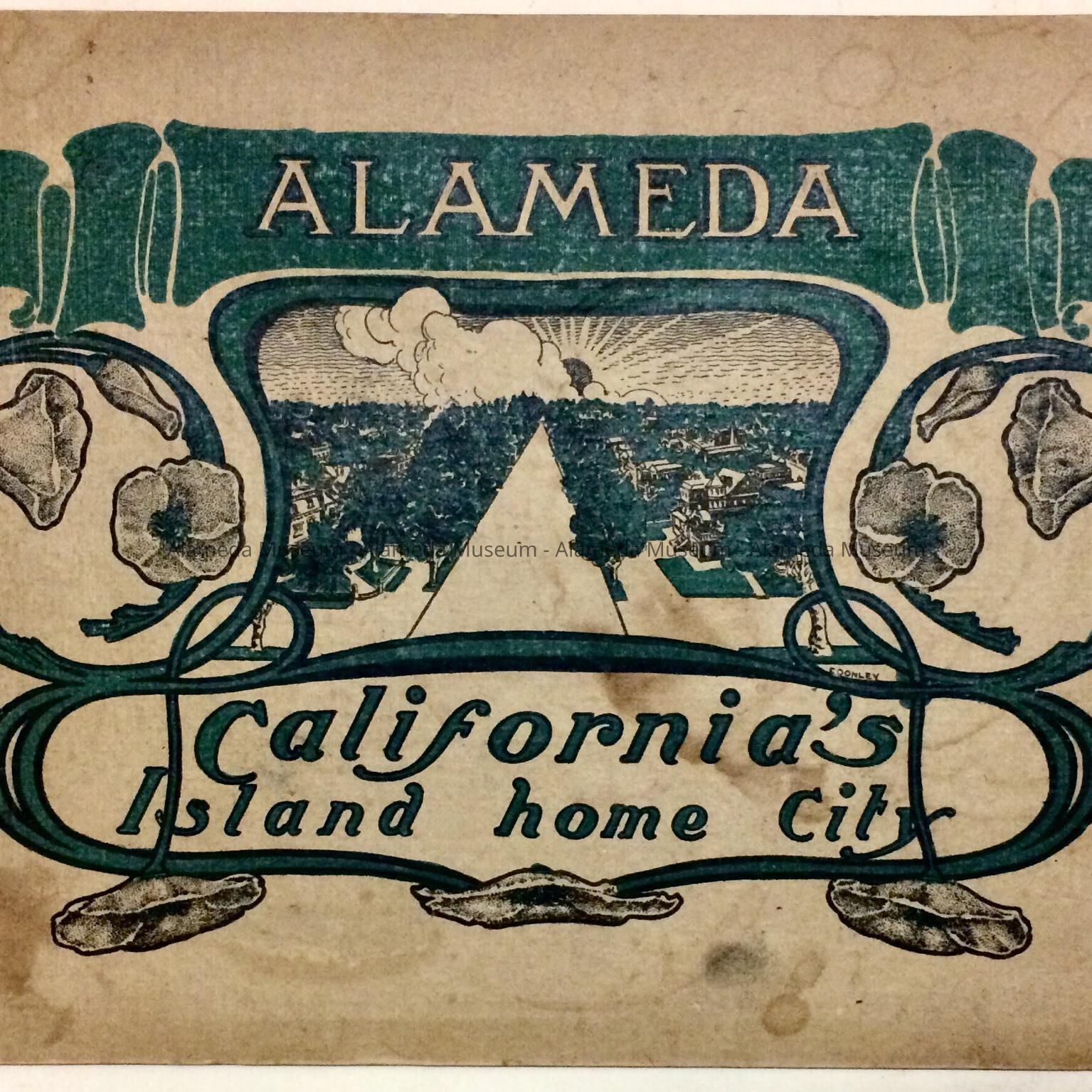 DESCRIPTION: A SOFT-BOUND BOOKLET WITH ILLUSTRATED COVER THAT CONSISTS OF ART NOUVEAU STYLE LETTERING AND POPPY DECORATIONS IN BLACK-AND-GREEN-COLORED TYPE ON AN OFF-WHITE-COLORED BACKGROUND. COVER STATES, "ALAMEDA, CALIFORNIA'S ISLAND HOME CITY." PRINTED BY THE ALAMEDA DAILY ARGUS.