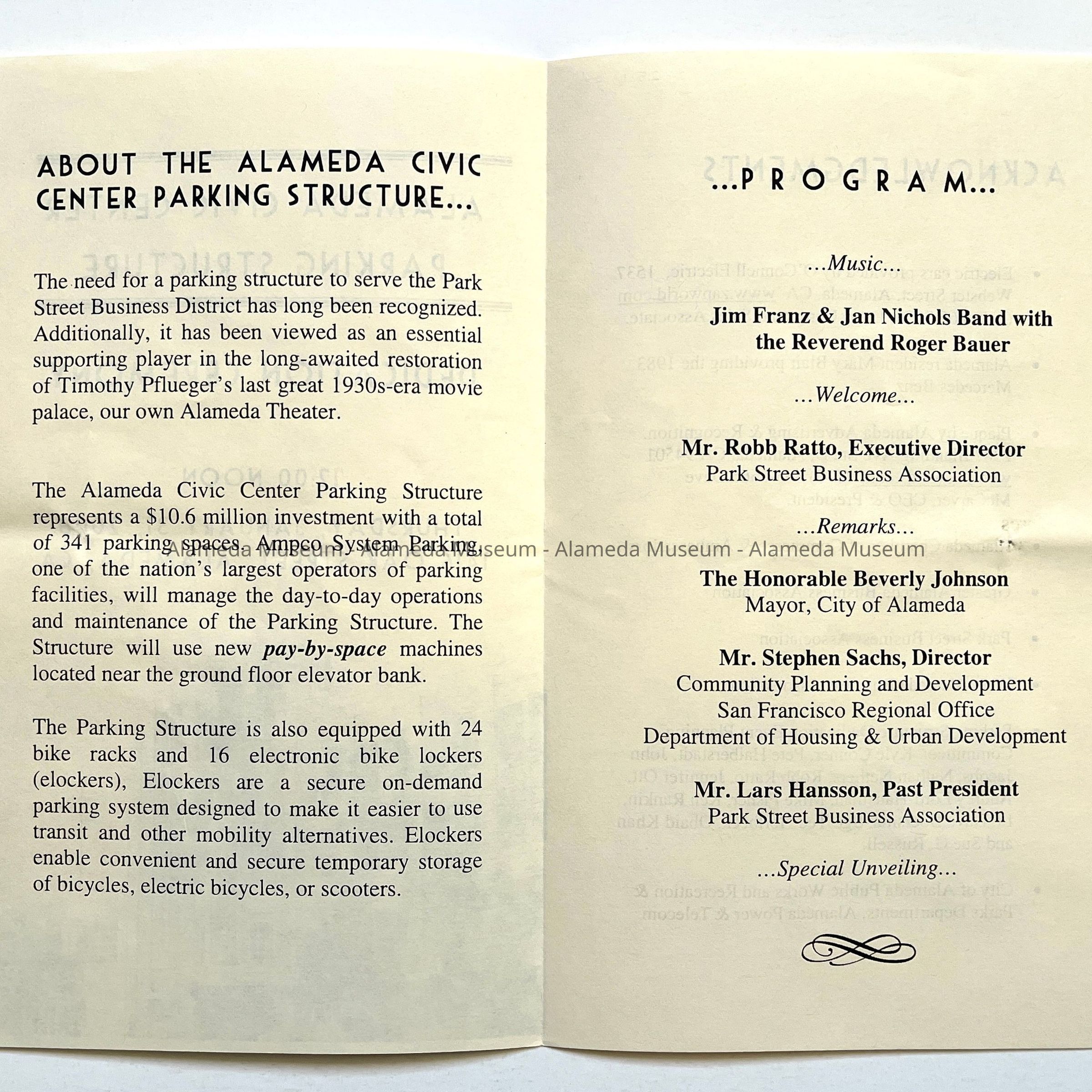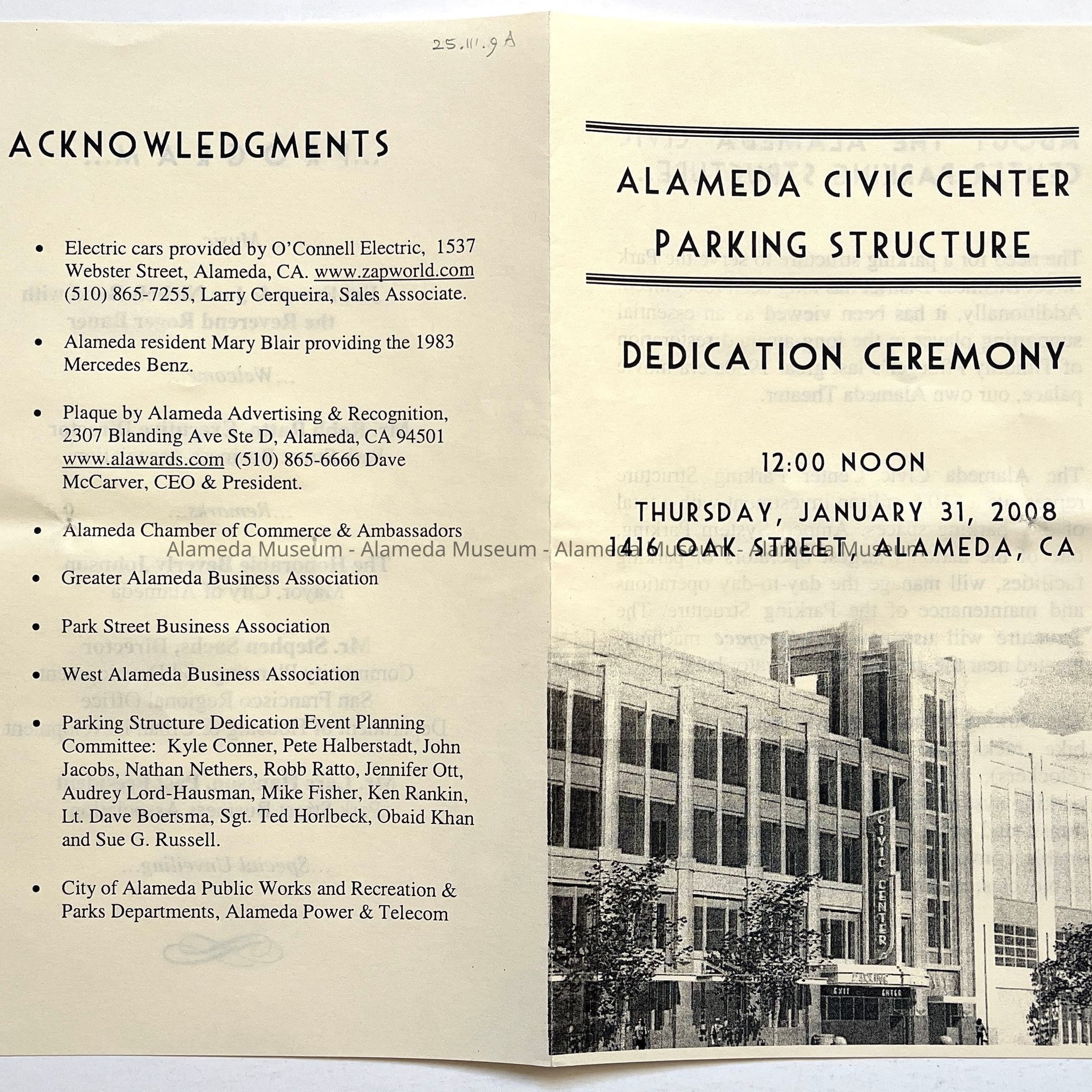 Alameda Civic Center Parking Structure Dedication Ceremony Program, 2008Entry/Object ID