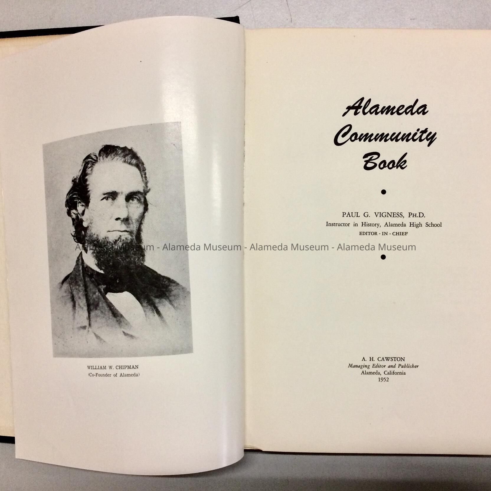 A BOOK ENTITLED, "ALAMEDA COMMUNITY BOOK." AUTHORED BY PAUL G VIGNESS, INSTRUCTOR OF HISTORY AT ALAMEDA HIGH SCHOOL. HE WAS AMONG THE EARLY WRITERS OF ALAMEDA HISTORY.