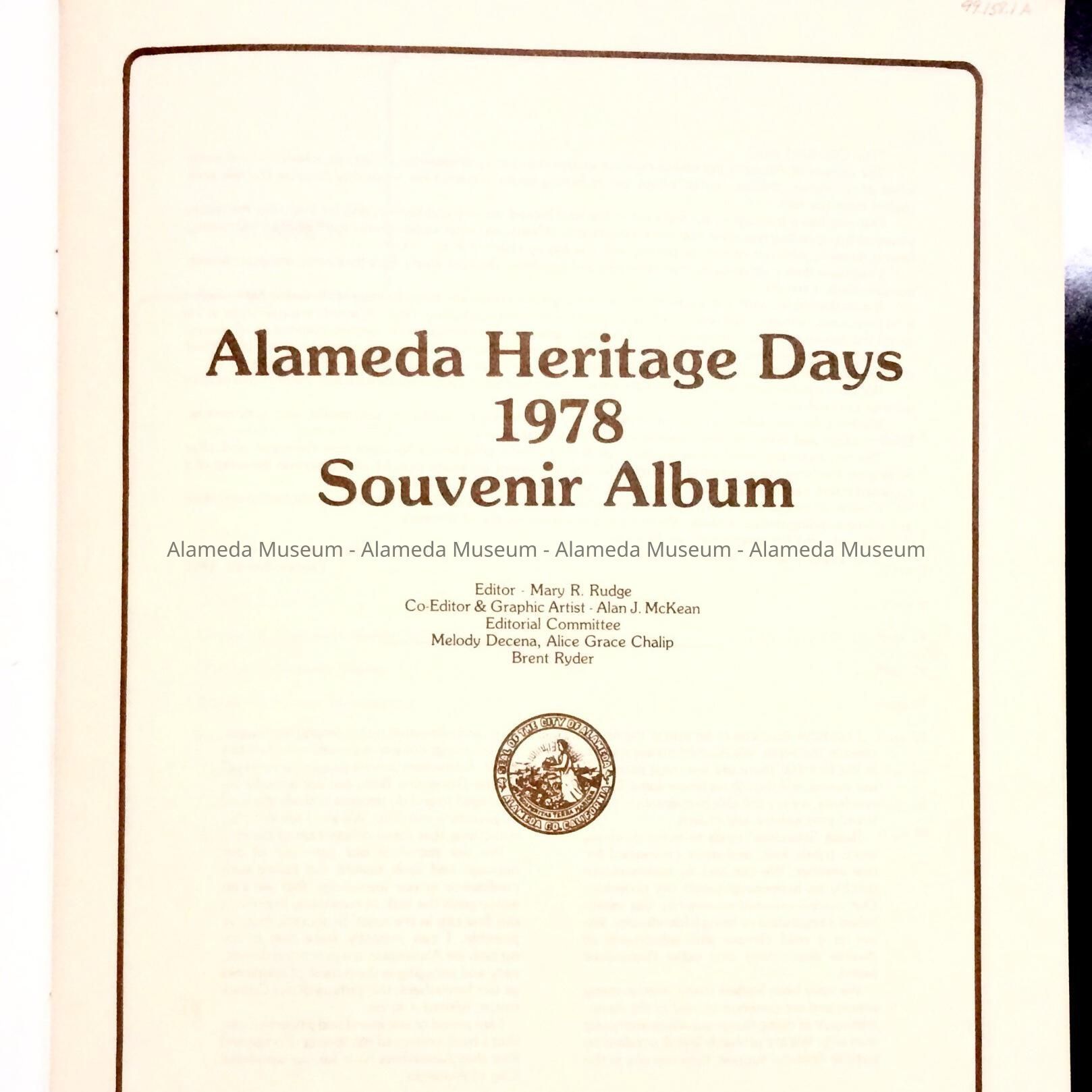 Alameda Heritage Days, Souvenir Album, 1978Entry/Object ID