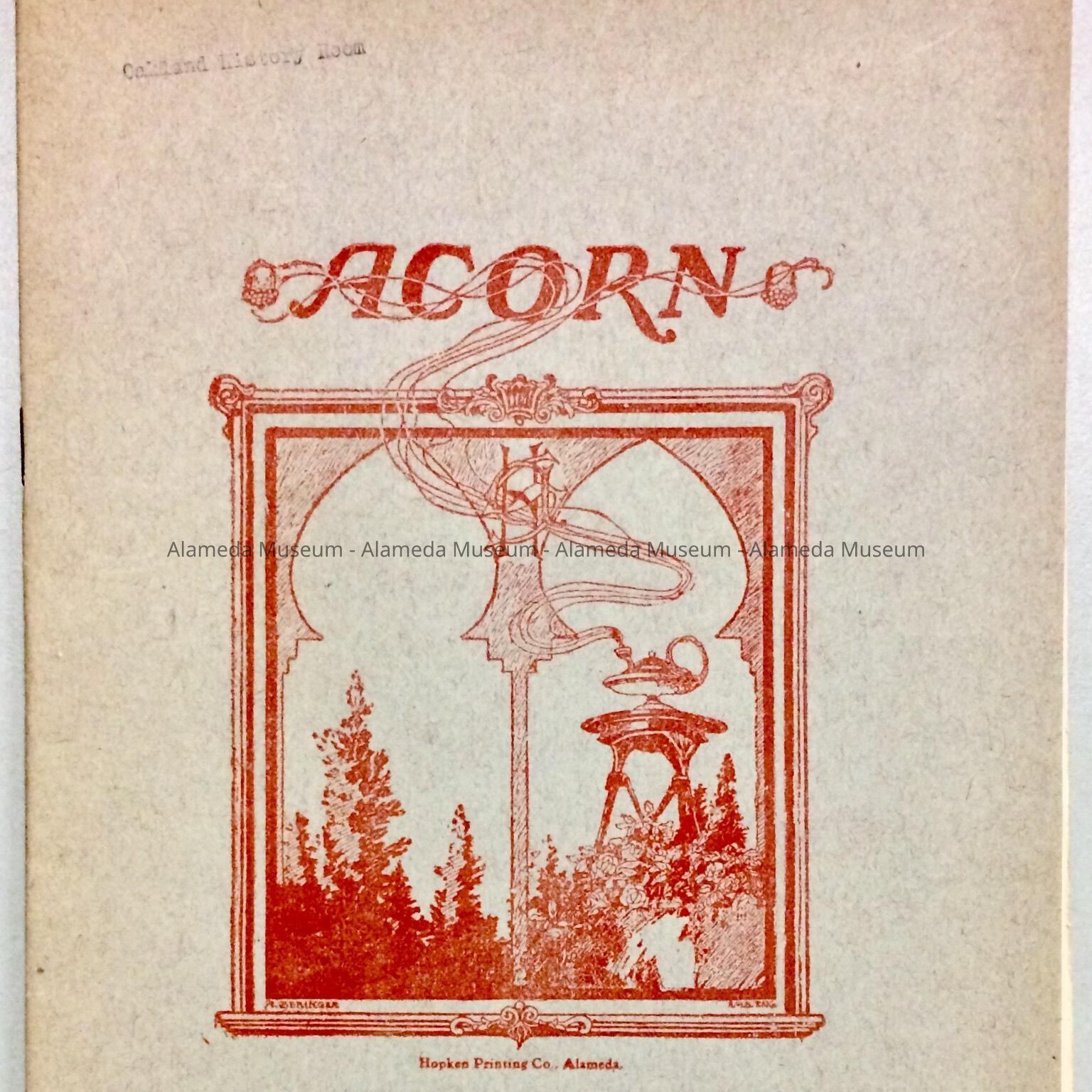EARLY EDITION OF THE "ACORN," PRODUCED BY THE STUDENT BODY OF ALAMEDA HIGH SCHOOL. THE BOOKLET INCLUDES ADVERTISEMENTS FOR LOCAL BUSINESSES.