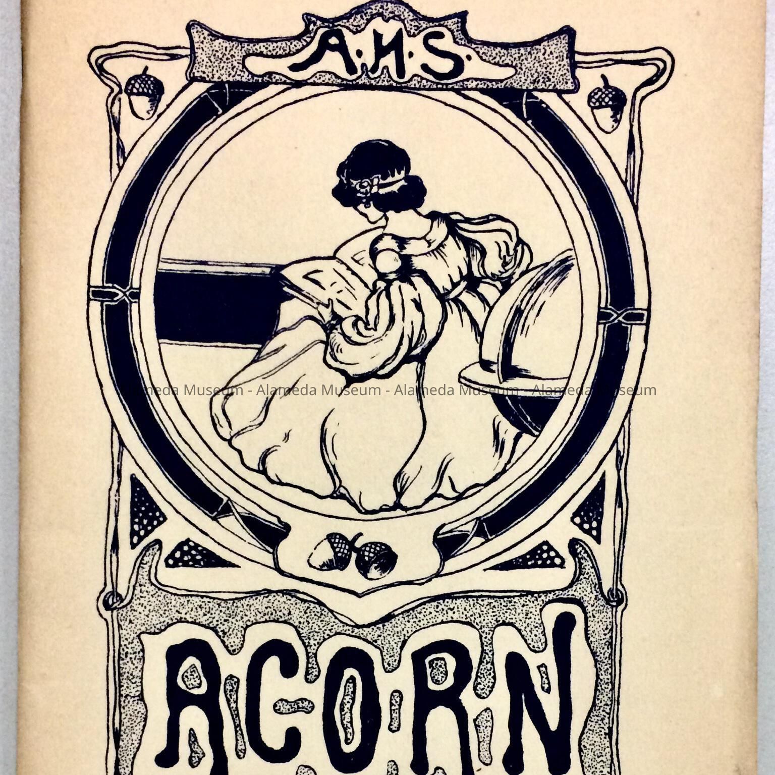 HISTORY OF OBJECT: A FEBRUARY 1906 EDITION OF THE ALAMEDA HIGH SCHOOL "ACORN." THIS PARTICULAR COPY BELONGED TO S. M. HASLETT, JR. THE BOOK INCLUDES A LISTING OF STUDENTS' ACTIVITIES, SPORTS EVENTS, ETC. AND ALSO ADVERTISEMENTS FOR LOCAL BUSINESSES OF THE PERIOD.
