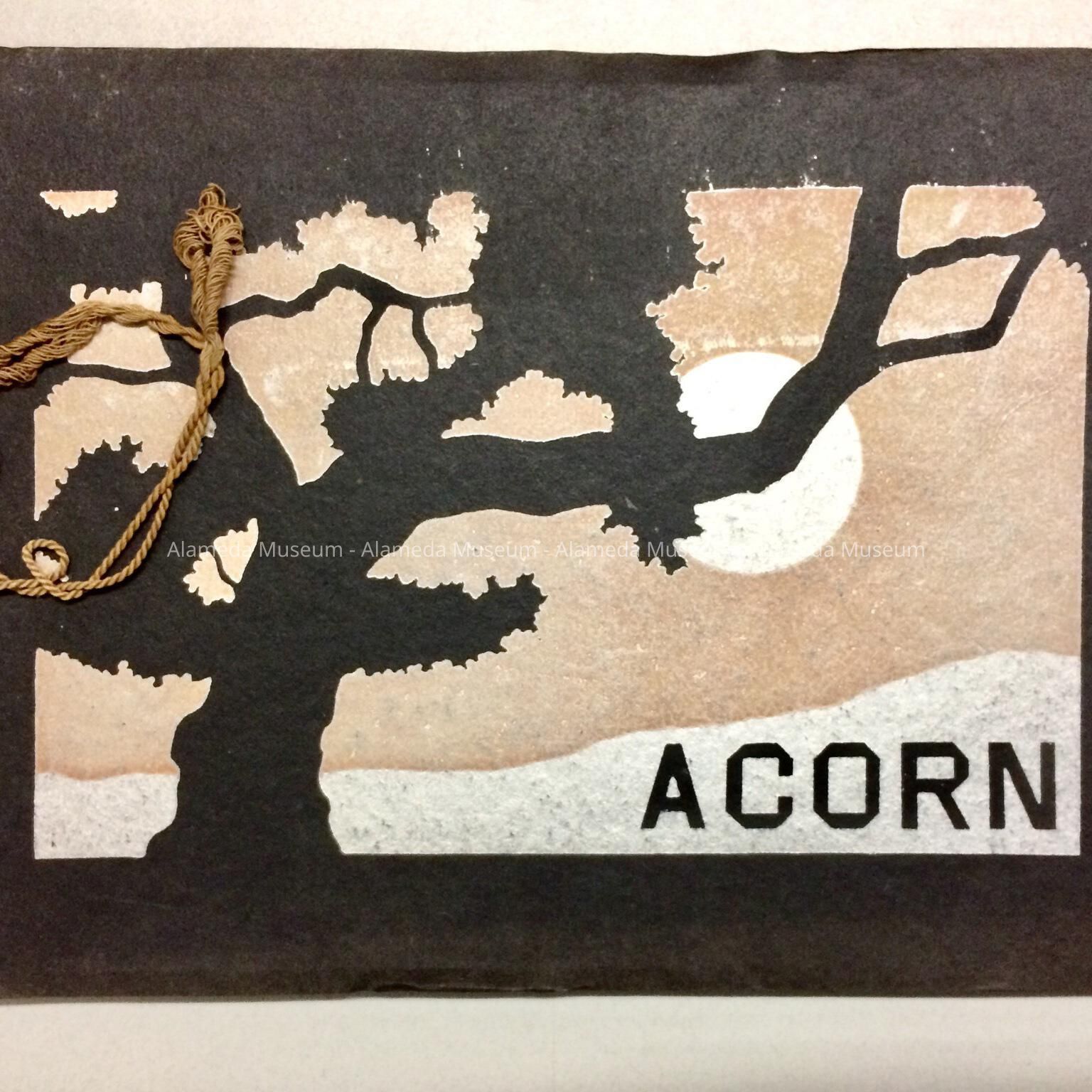 Soft bound yearbook with decorative cover of Oak tree and caption stating, "Acorn". Contents include photographic portraits, essays, etc.