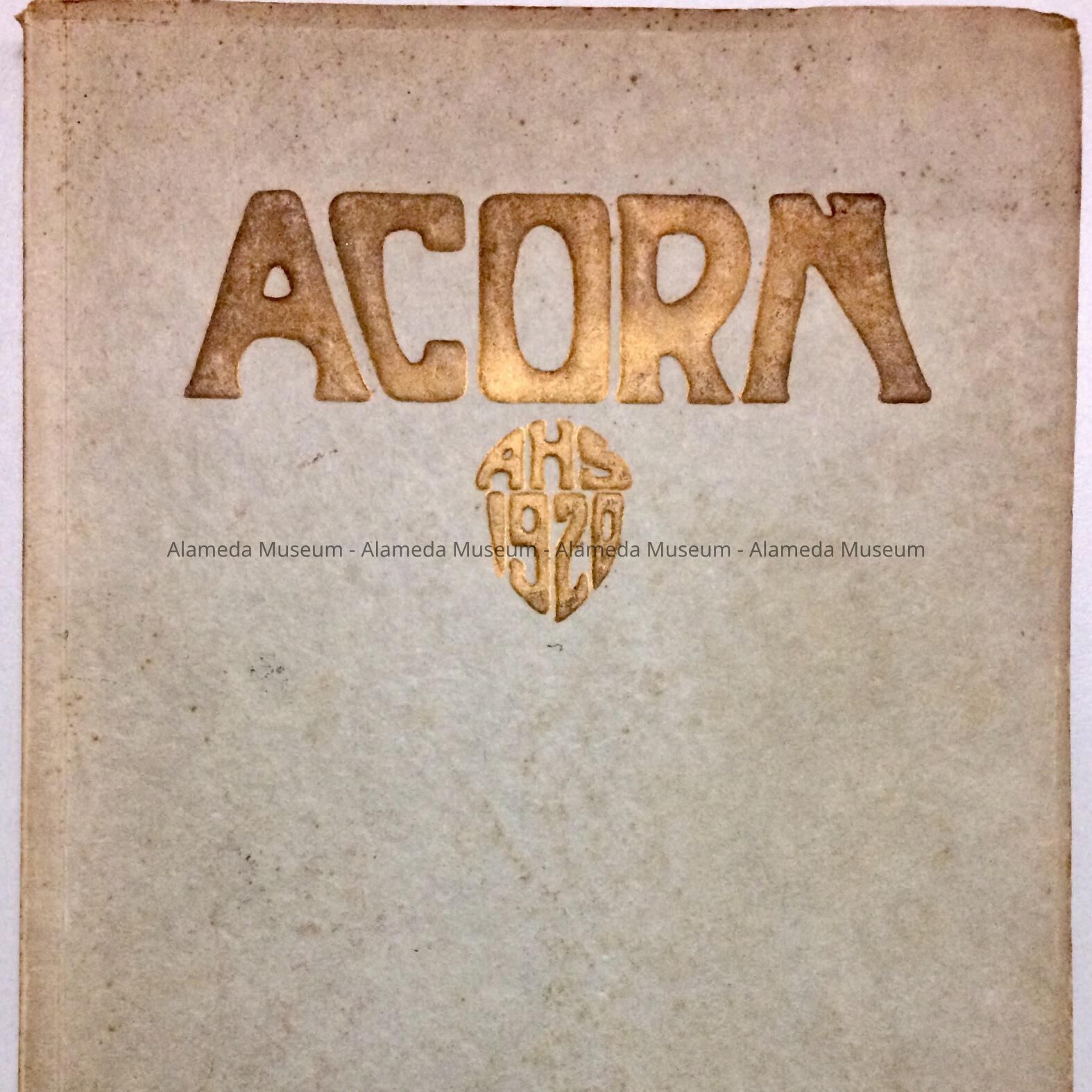 Yearbook entitled, “Acorn” for 1920, Alameda High School. Contents include portraits of graduates, illustrations of school events and student articles. This particular copy belonged to Tova Petersen.