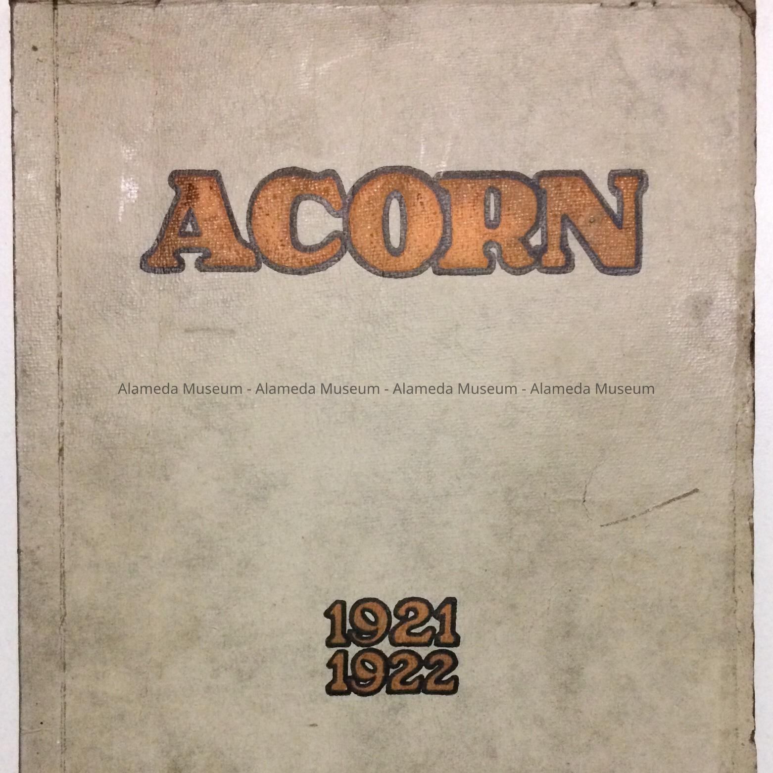 Yearbook entitled, “Acorn” for 1921-1922, Alameda High School. Contents include portraits of graduates, illustrations of school events and student articles.