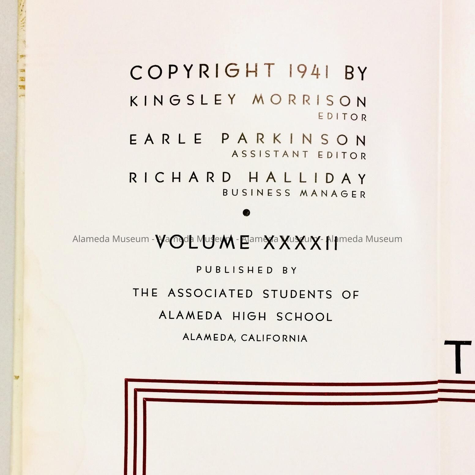A 1941 COPY OF THE ALAMEDA HIGH SCHOOL "ACORN - 1941," WHICH WAS THE ORIGINAL PROPERTY OF FRANK PERKINS.