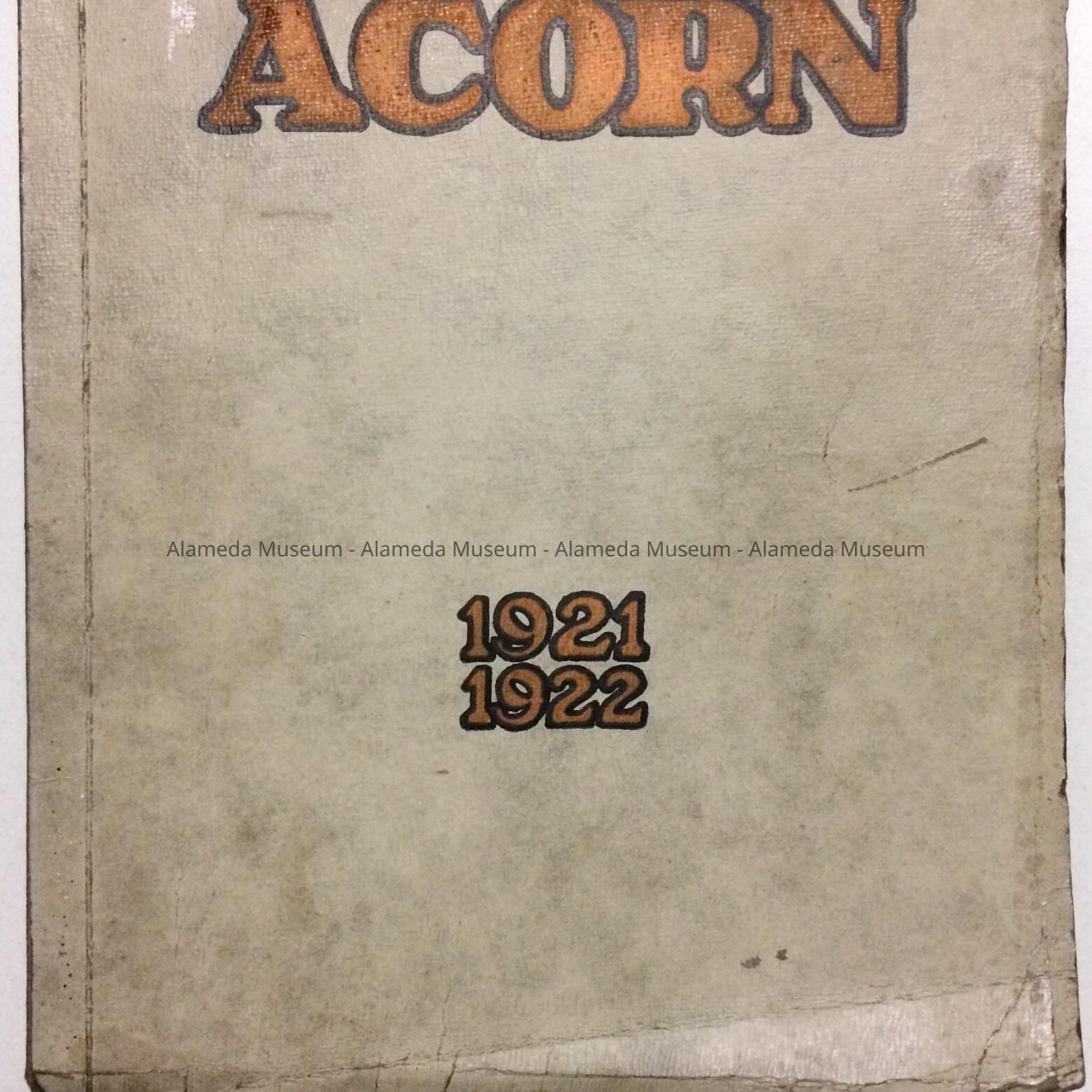 SOFT-BOUND YEARBOOK, WITH COVER DESIGN IN BLACK AND GOLD LETTERING, ON A LIGHT GREY BACKGROUND --- ALAMEDA HIGH SCHOOL'S "ACORN." CONTAINS PHOTOGRAPHS OF STUDENTS, ESSAYS, LISTS OF EVENTS, ETC.