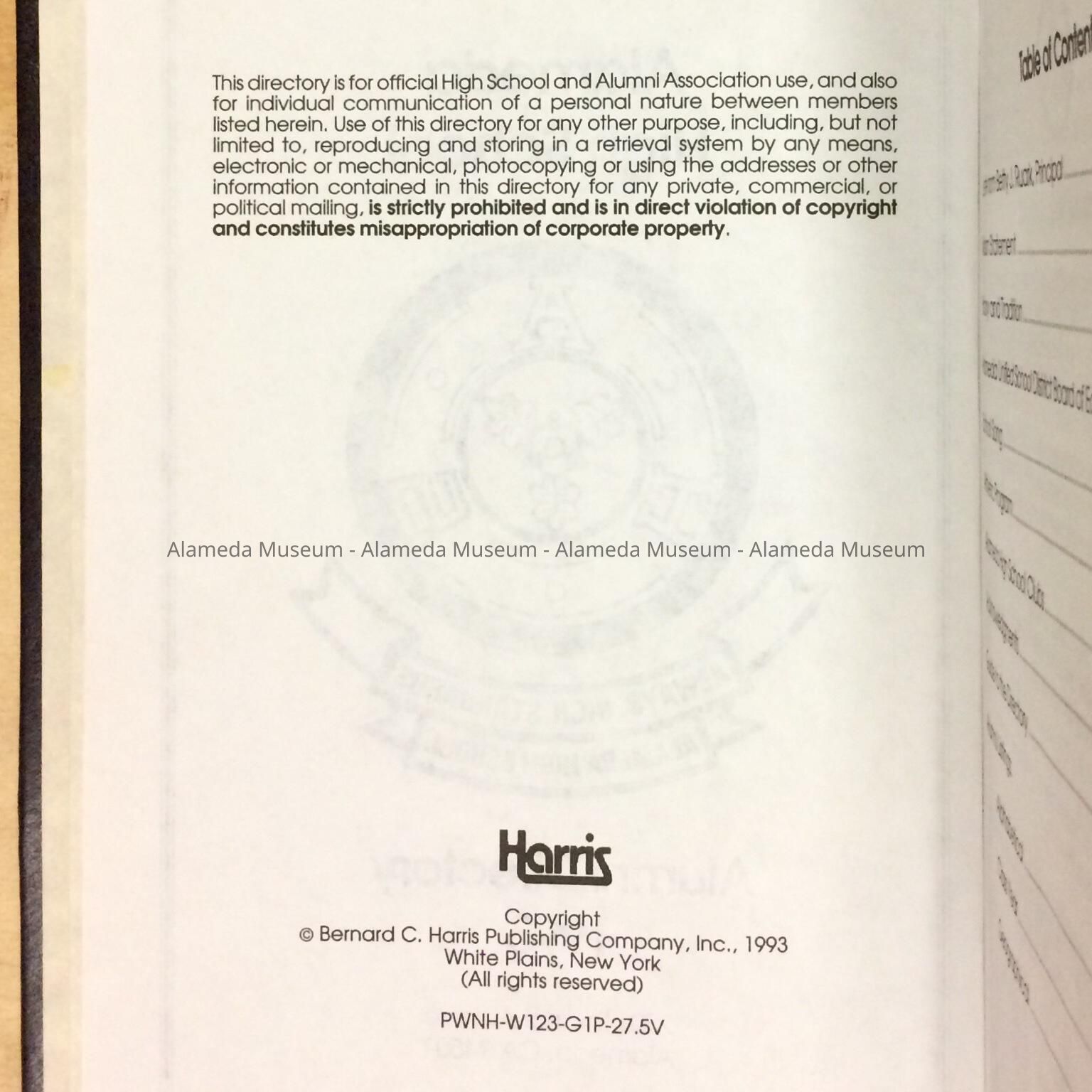 Alameda High School Alumni Directory, 1993Entry/Object ID