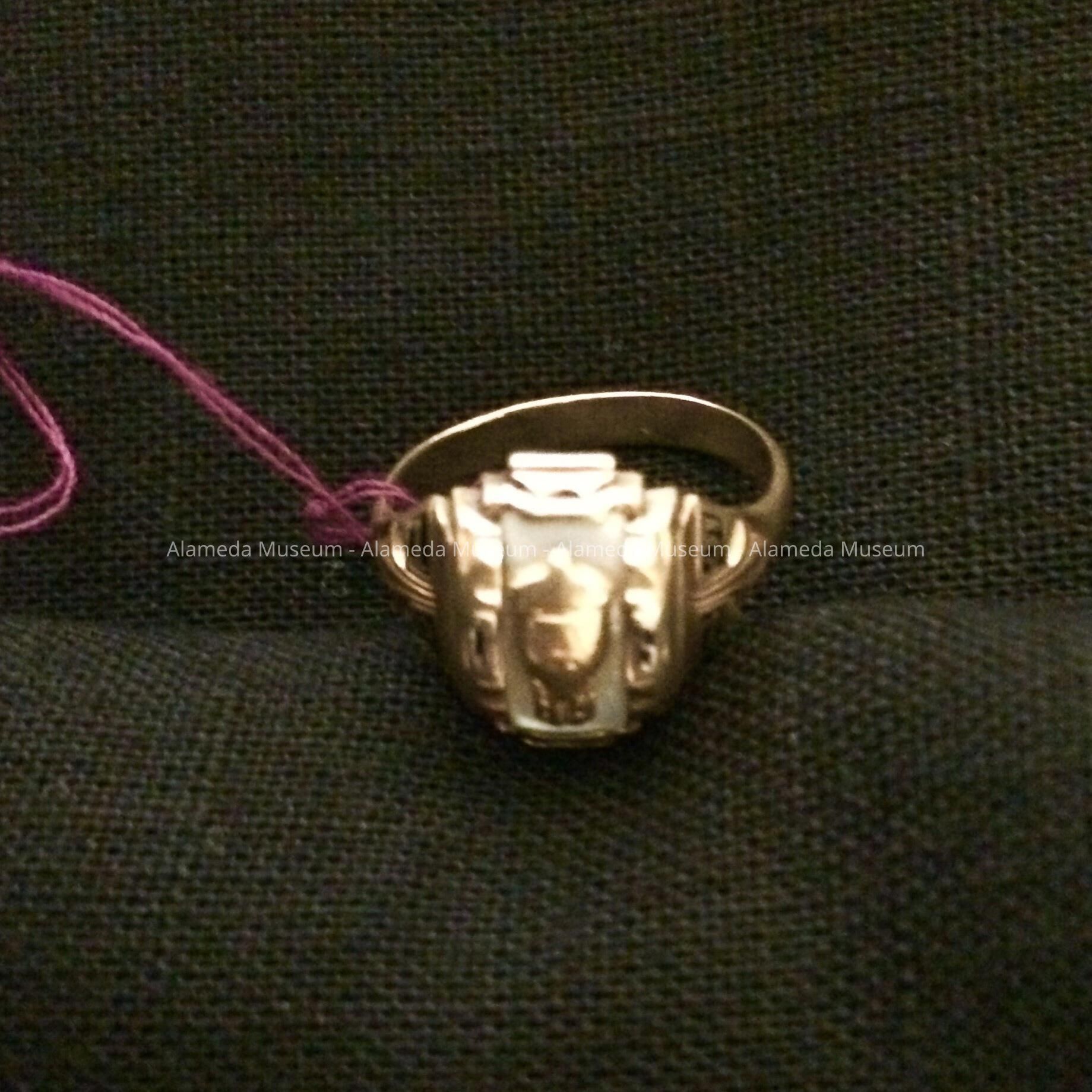 A WOMAN'S CLASS RING FROM THE ALAMEDA HIGH SCHOOL, DATED 1957. Ring originally worn by the late Mrs. Tom Greene, graduate of the Alameda High School.