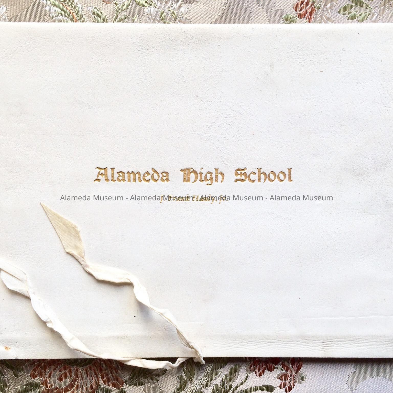 A. DIPLOMA. DIPLOMA PRINTED ON IMITATION PARCHMENT PAPER, WITH BOLD PRINTED CAPTION, "ALAMEDA HIGH SCHOOL," IN RED- AND BLACKCOLORED TYPE.