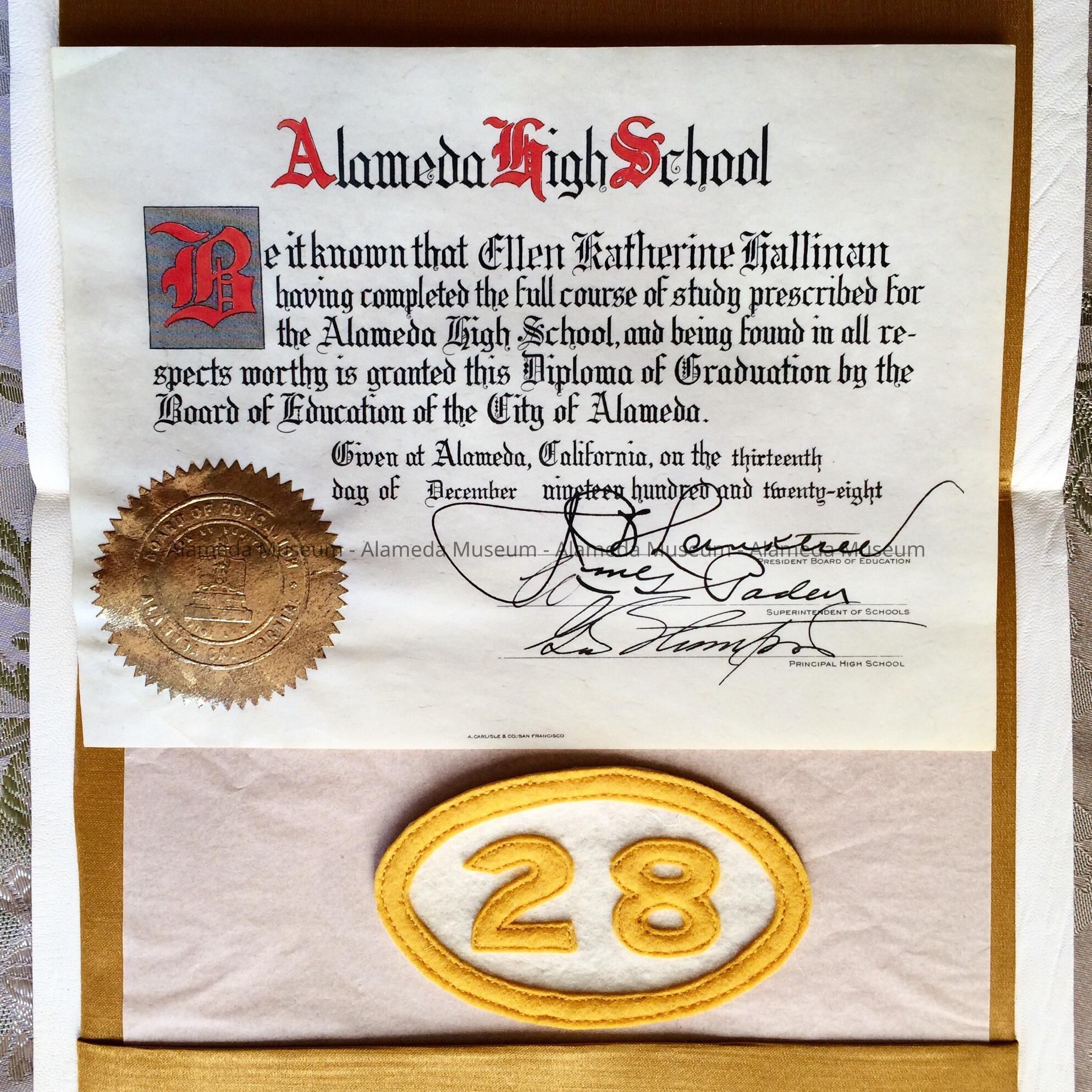 Alameda High School Diploma of Ellen Katherine Hallinan Beaudran, 1928Entry/Object ID