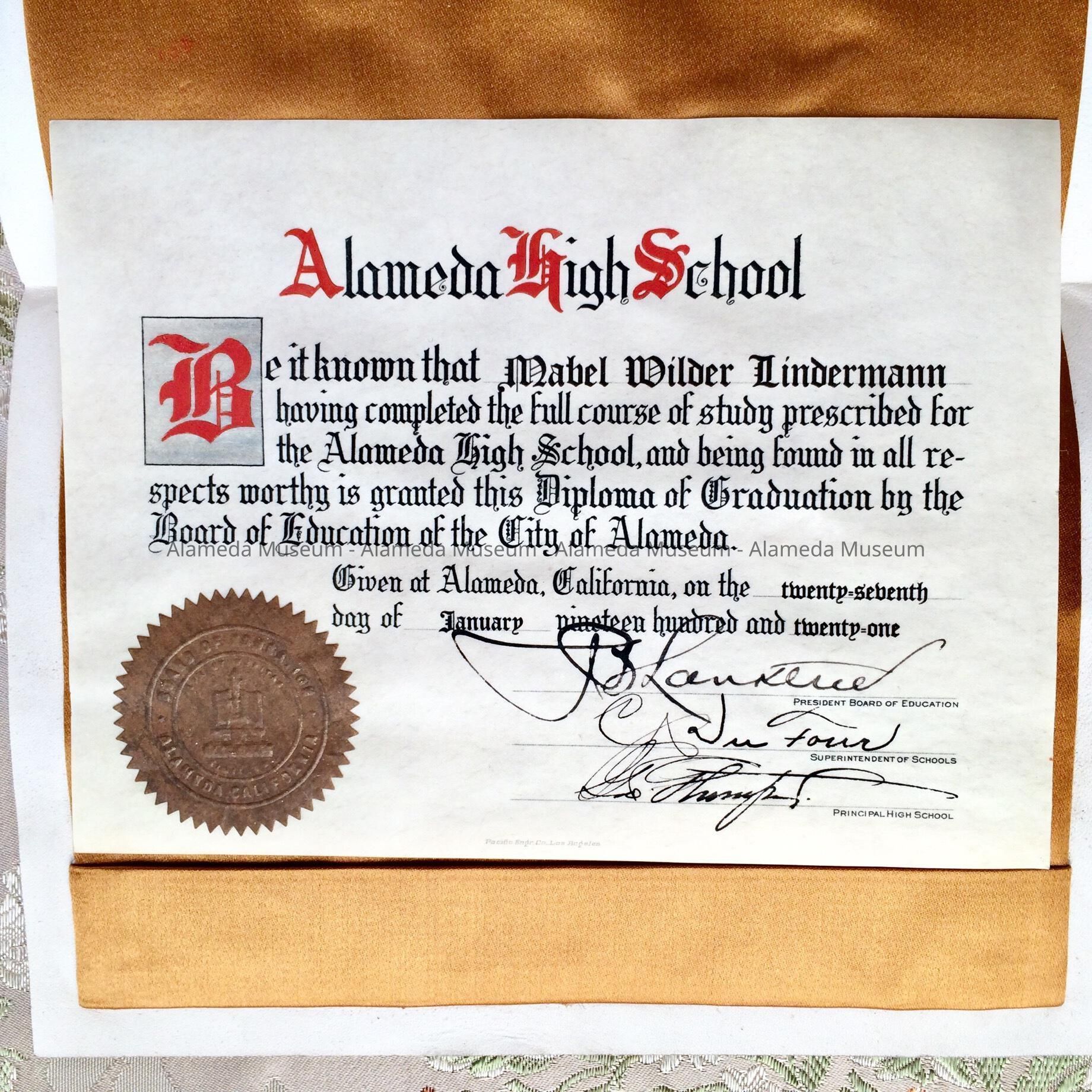 Alameda High School Diploma of Mabel Linderman, 1921Entry/Object ID