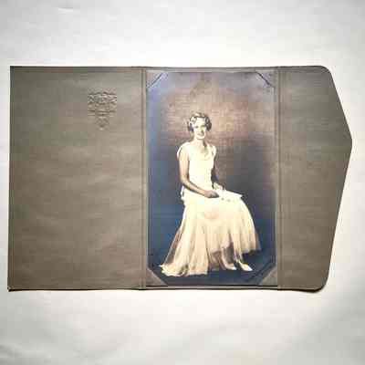 A BLACK-AND-WHITE PHOTO IN ITS ORIGINAL JACKET. JACKET HAS AN EMBOSSED DESIGN ON HEAVY GREY-COLORED STOCK PAPER.