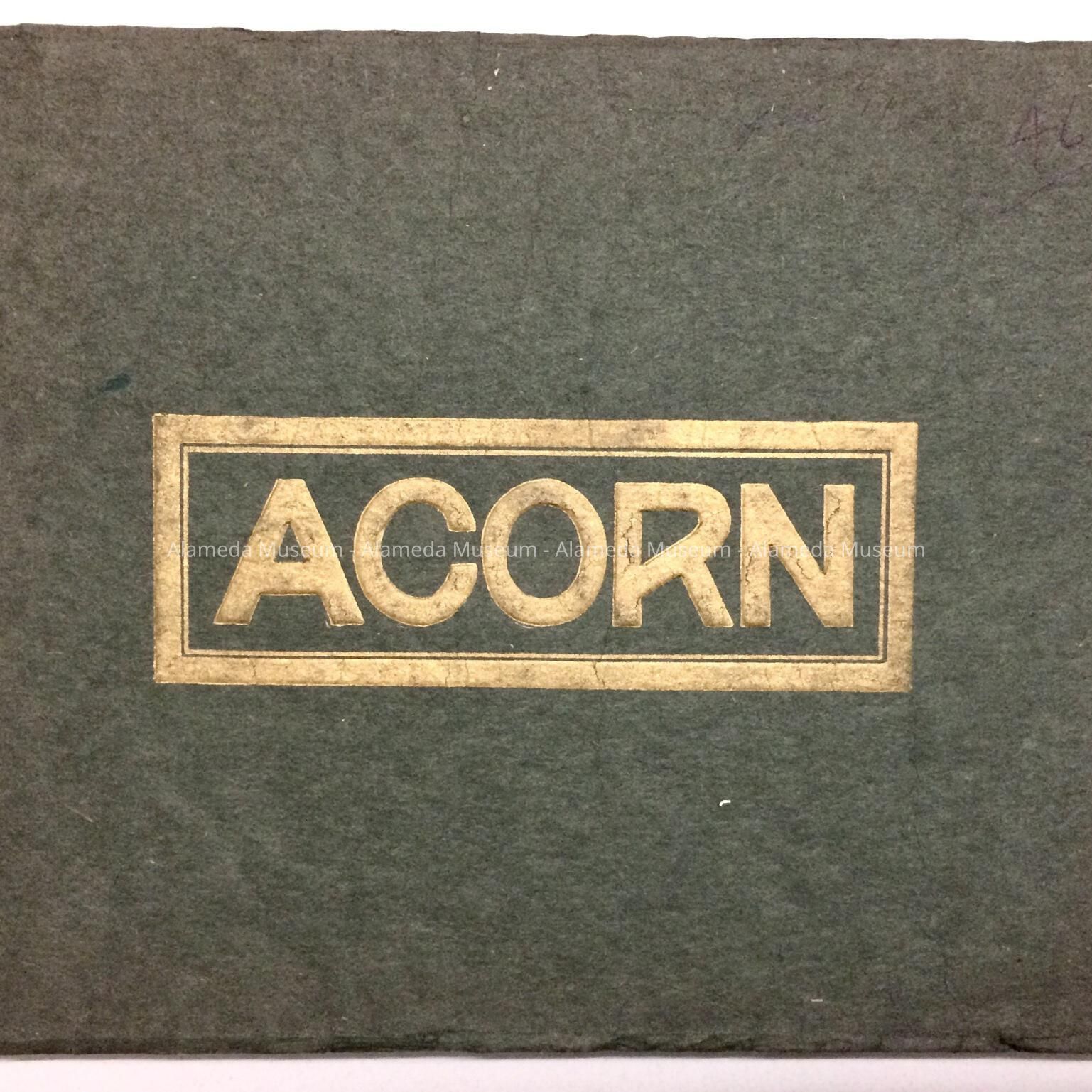 DESCRIPTION: A SOFT-BOUND BOOKLET. COVER HAS AN EMBOSSED CAPTION, "THE ACORN," IN GOLD-COLORED TYPE ON A DARK GREEN-COLORED BACKGROUND.