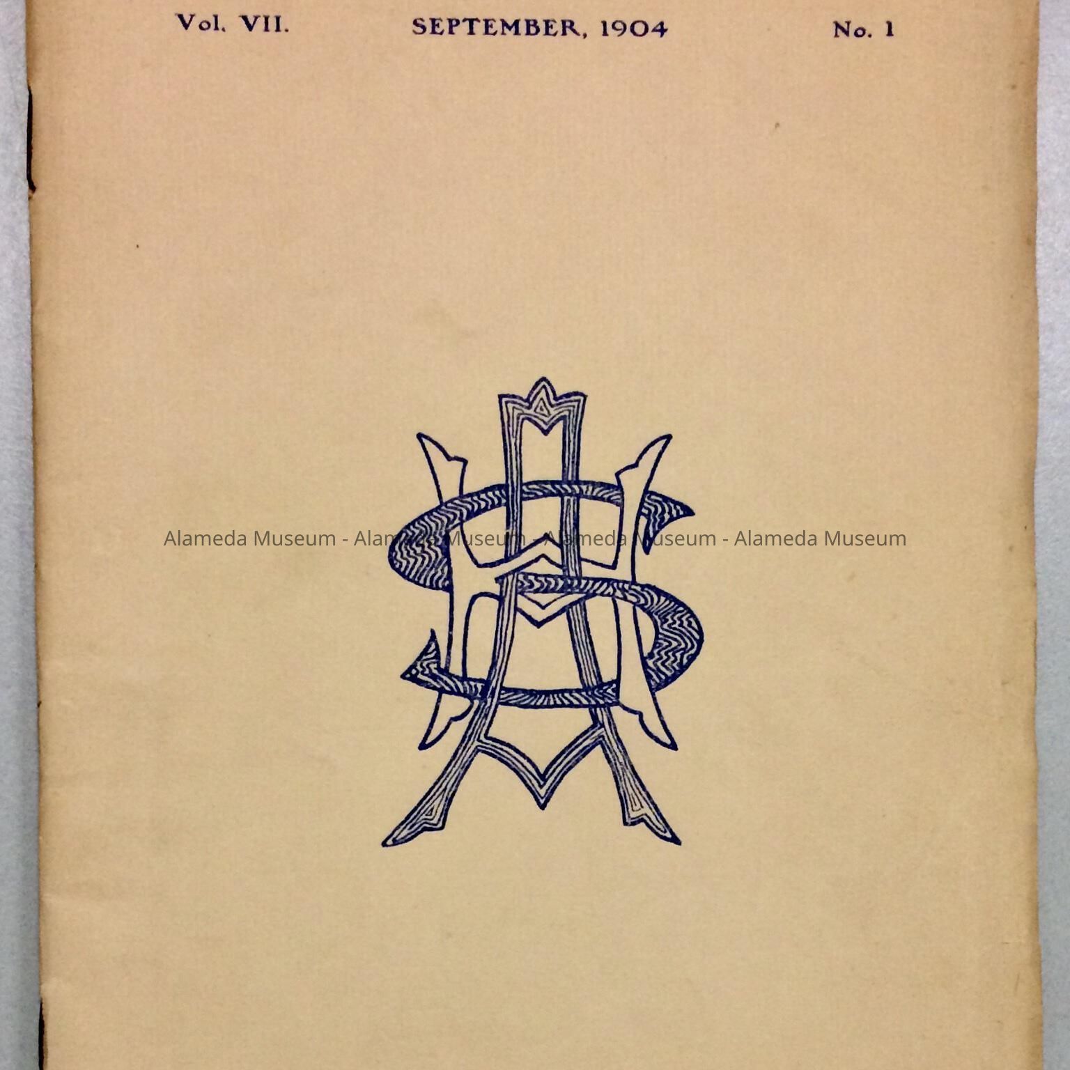 Description: Soft cover booklet, off-white colored paper cover, ornate insignia "A.H.S,", in blue type.