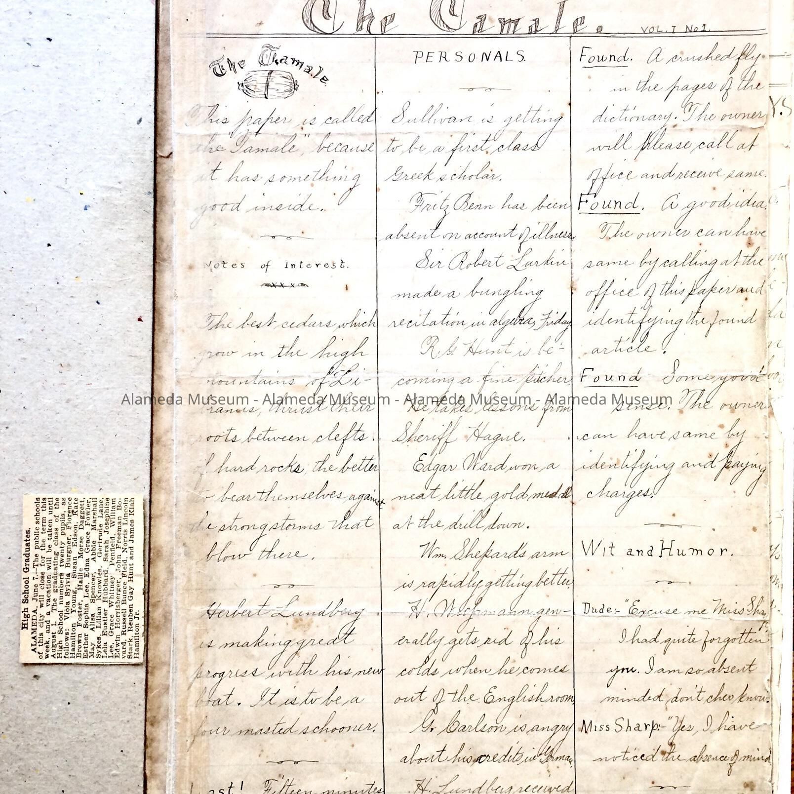 HISTORY OF OBJECT: THE NEWSPAPER WAS ORIGINALLY CALLED THE TAMALE, BUT THE NAME SEEMS TO HAVE BEEN CHANGED IN 1898, TO THE HIGH SCHOOL STAR.