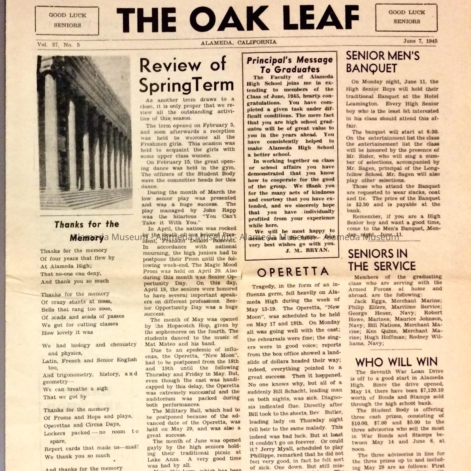 Alameda High School Newspaper 'The Oak Leaf', June 1945Entry/Object ID