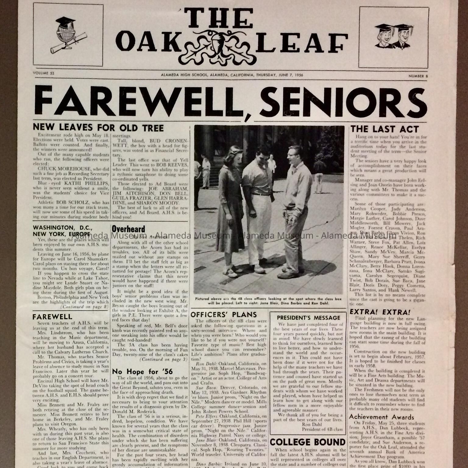 Alameda High School Newspaper 'The Oak Leaf', June 1956Entry/Object ID