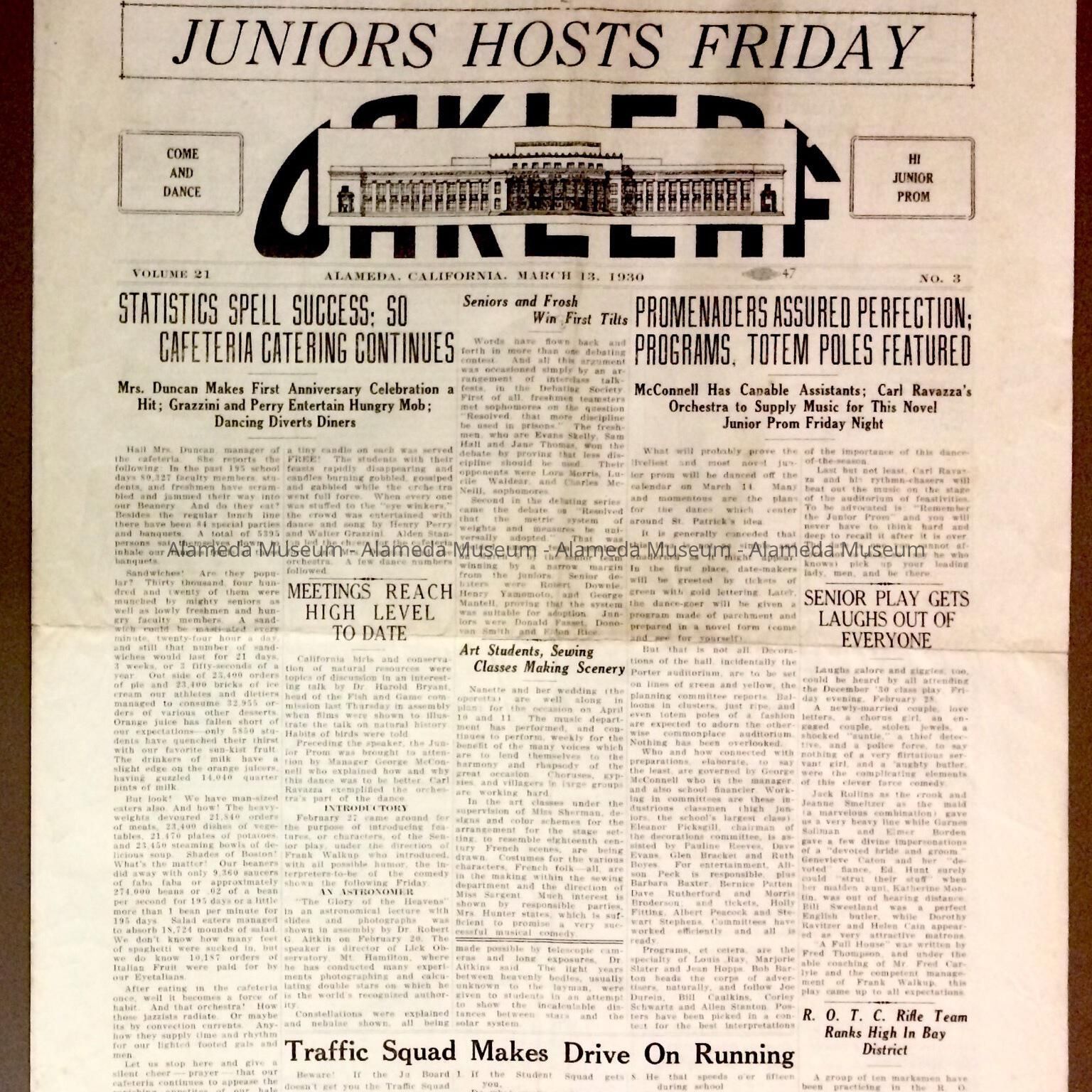 Alameda High School newspaper 'The Oak Leaf', March 13, 1930Entry/Object ID