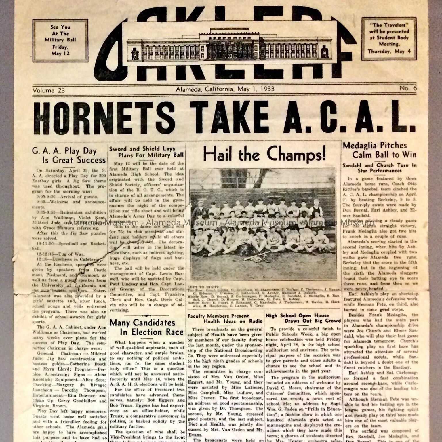 Alameda High School newspaper 'The Oak Leaf', May 1, 1933Entry/Object ID
