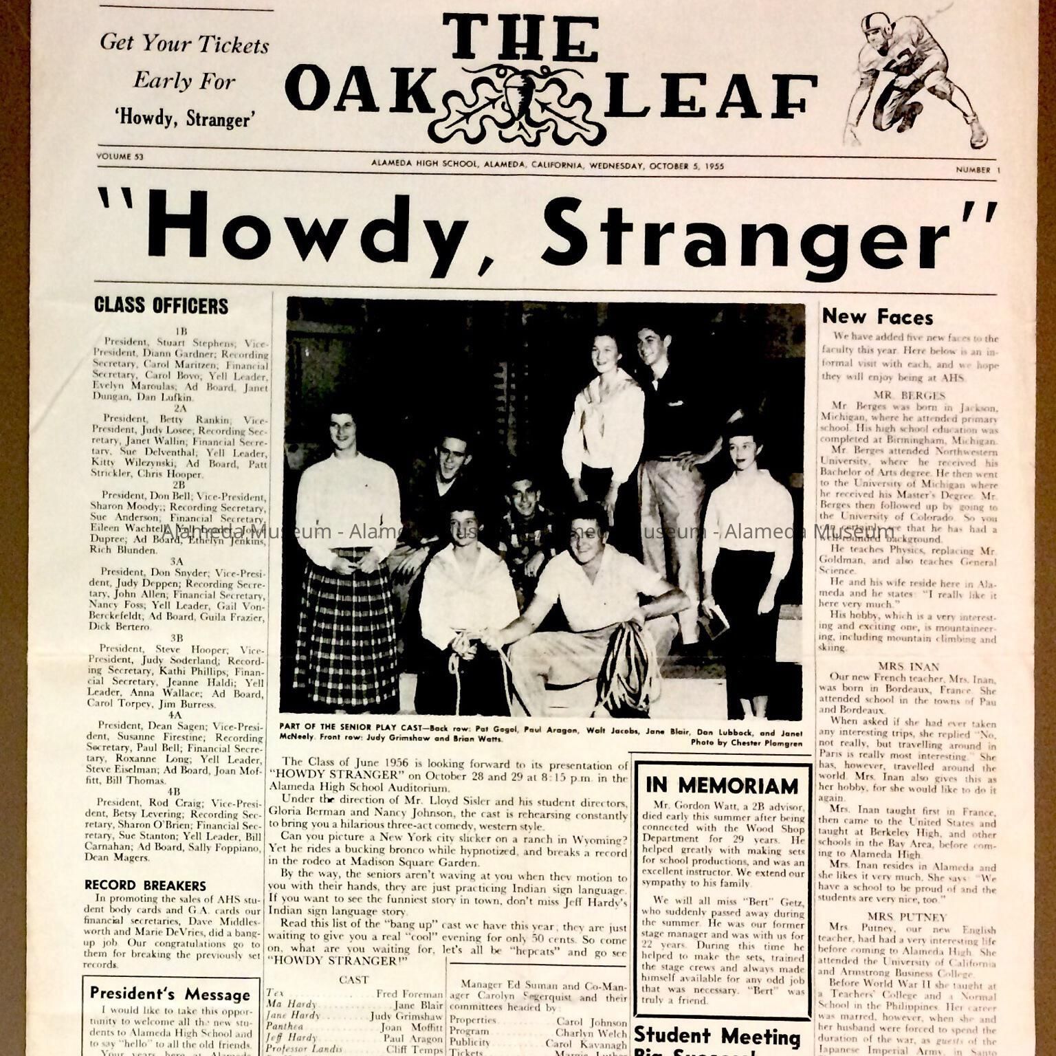 Alameda High School Newspaper 'The Oak Leaf', October 1955Entry/Object ID