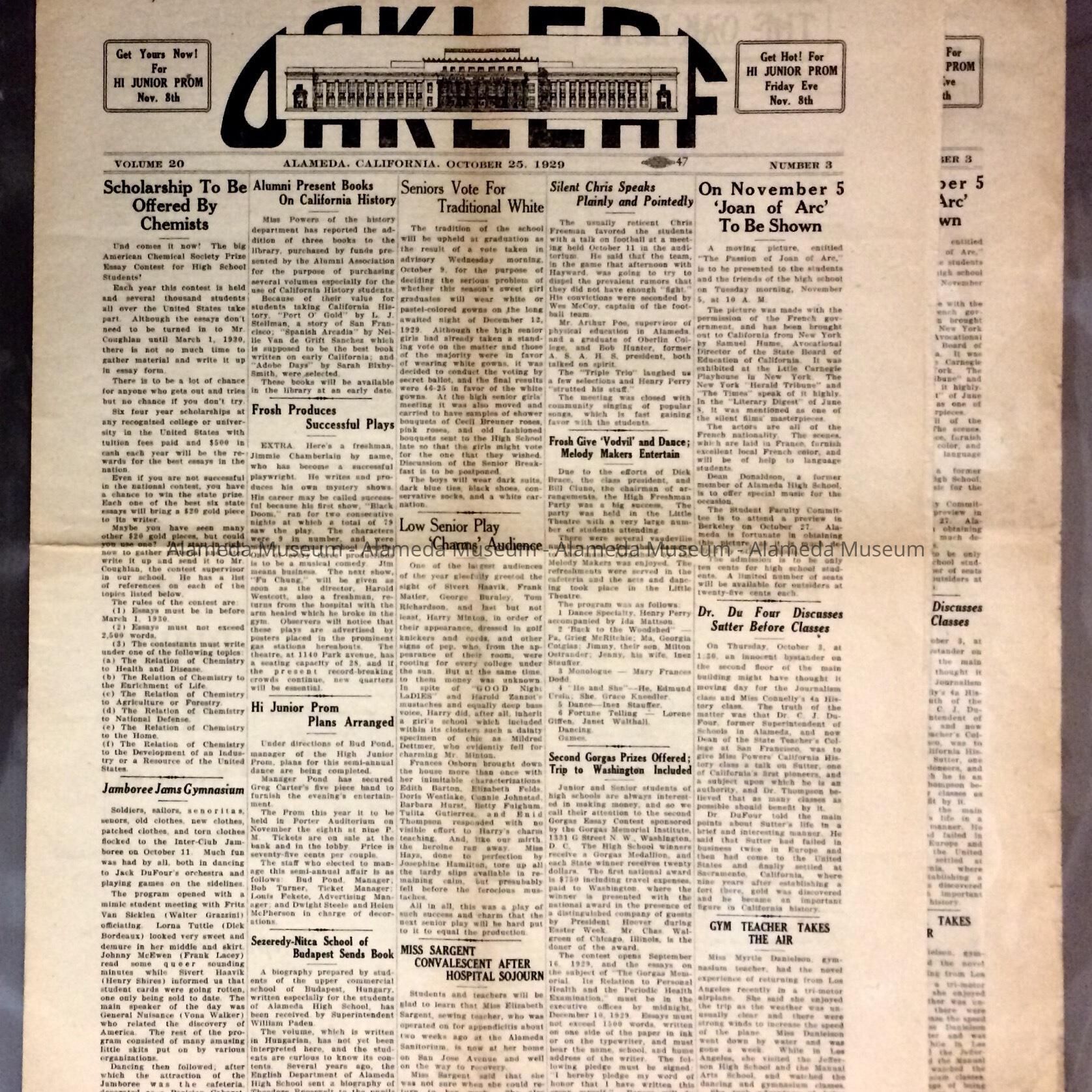Alameda High School newspaper 'The Oak Leaf', October 25, 1929Entry/Object ID