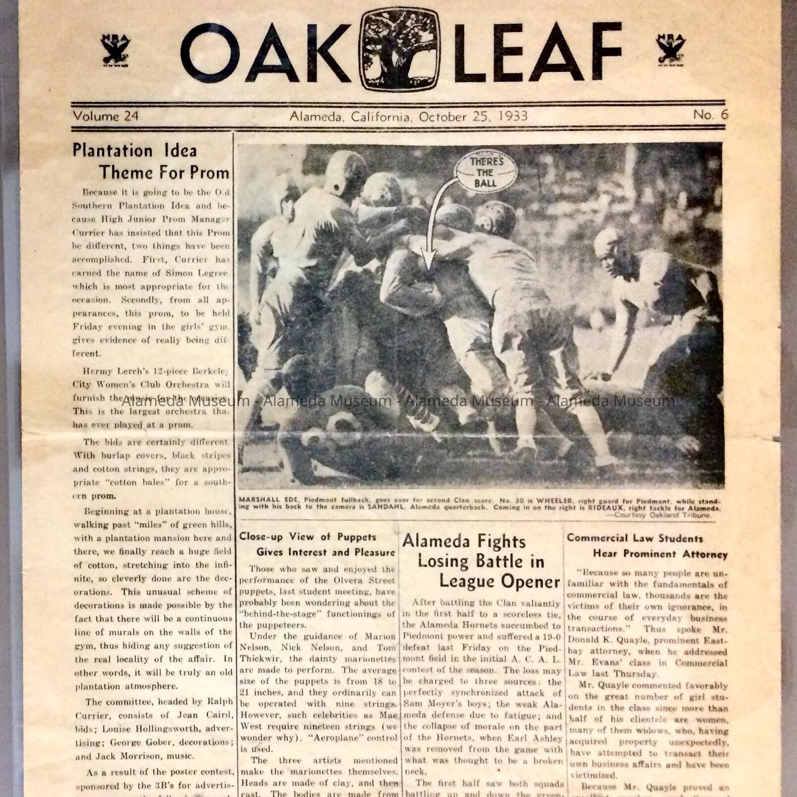 Alameda High School newspaper 'The Oak Leaf', October 25, 1933Entry/Object ID