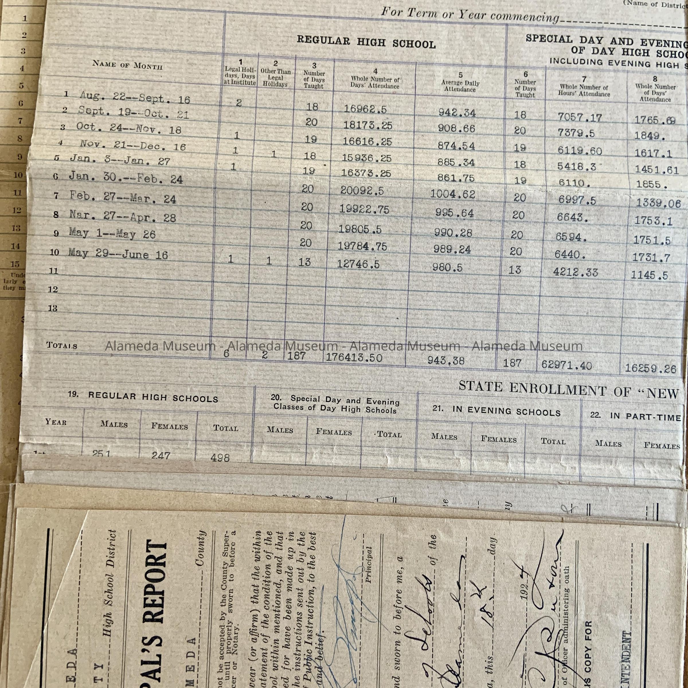 Alameda High School Principal's Report, 1922-1926Entry/Object ID