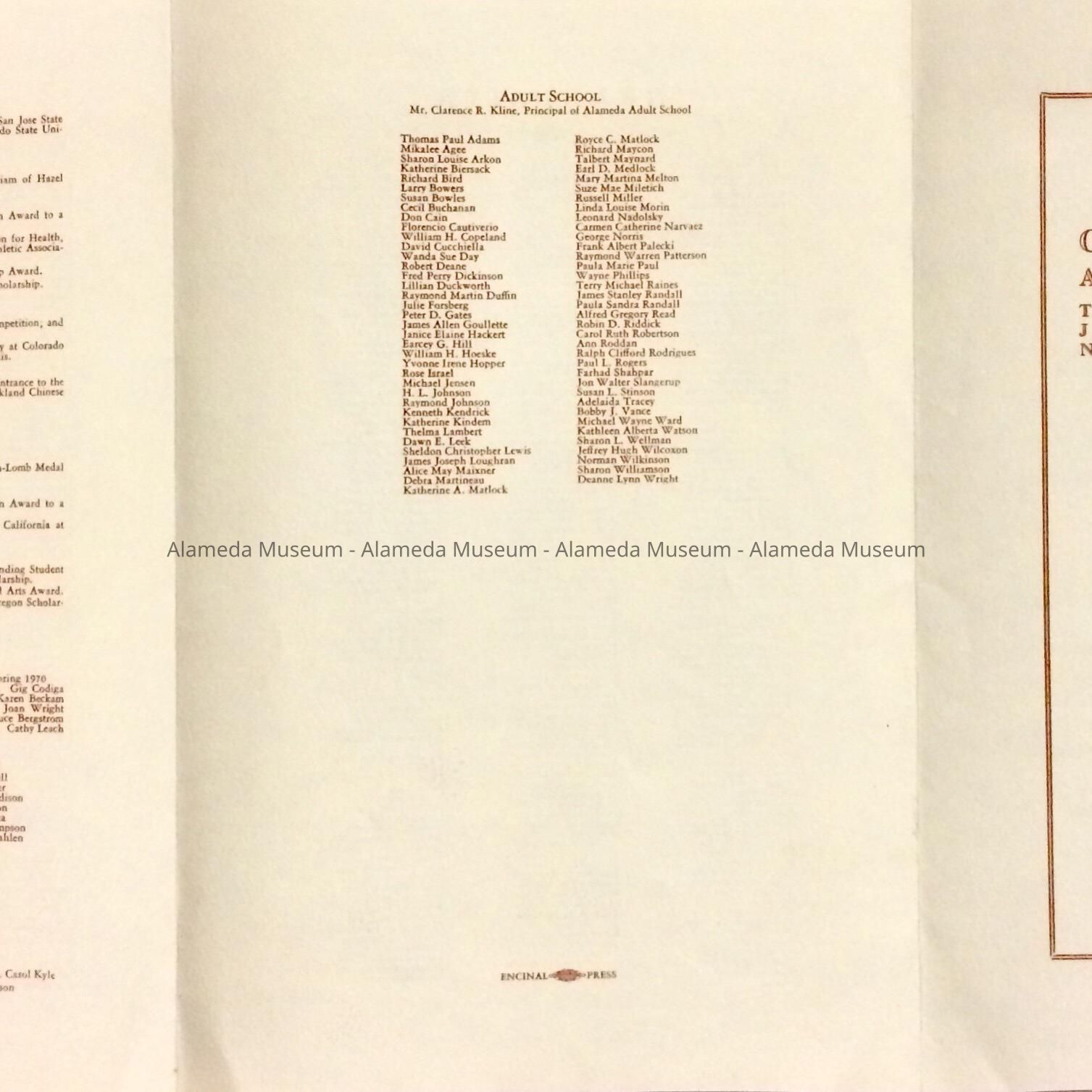 Alameda High School Program of Commencement, 1970Entry/Object ID