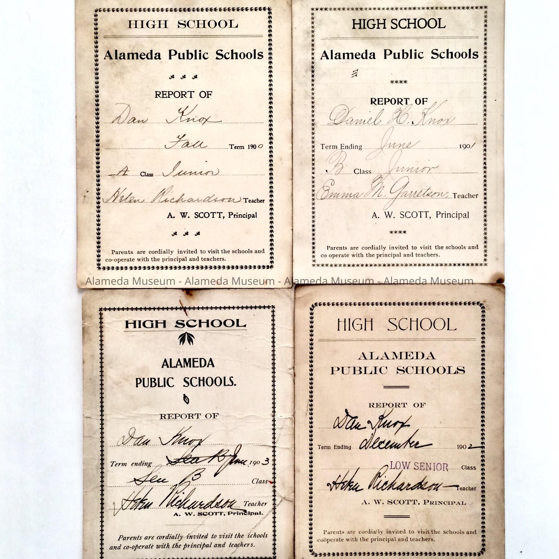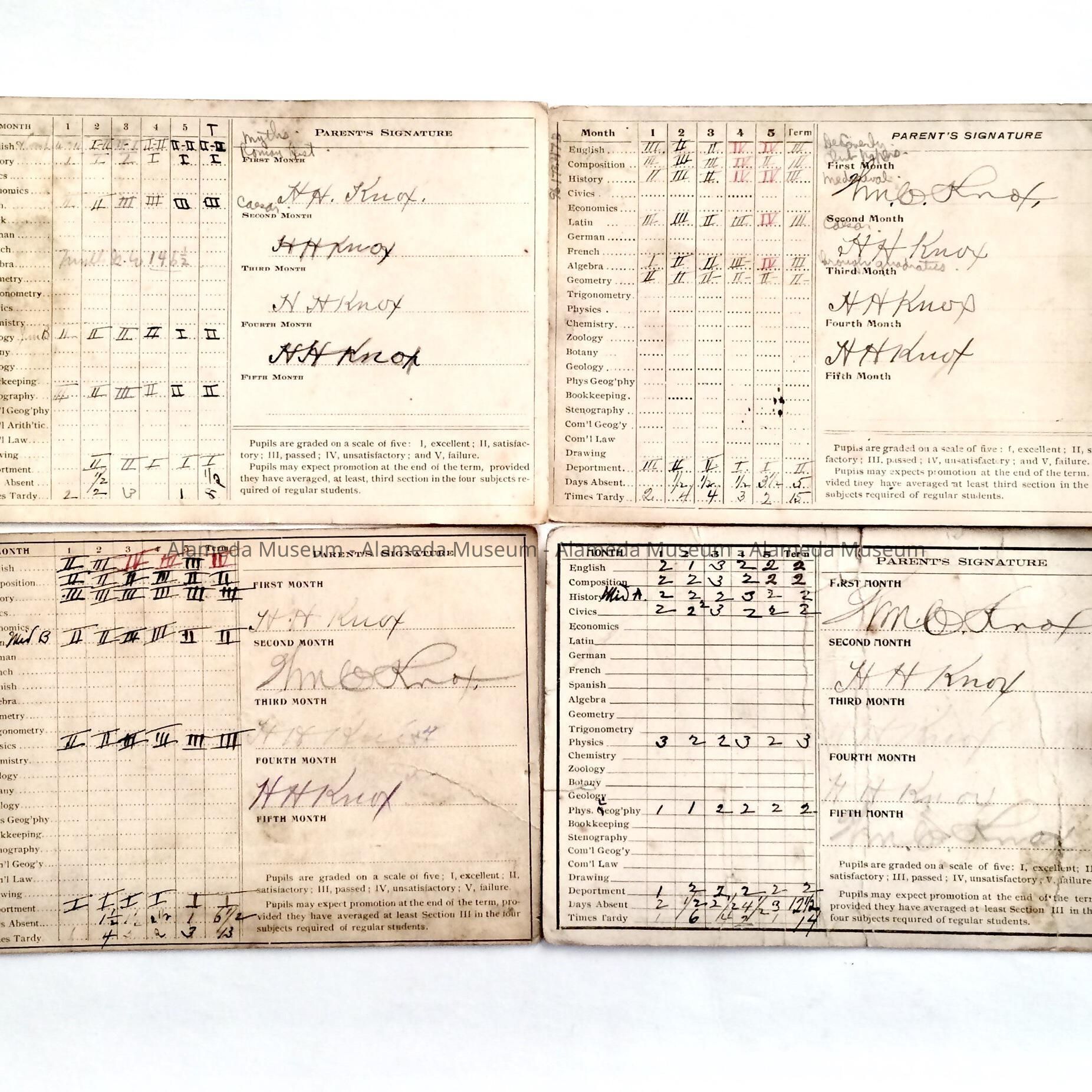 Alameda High School Report Cards of Daniel Knox, 1900-1903Entry/Object ID