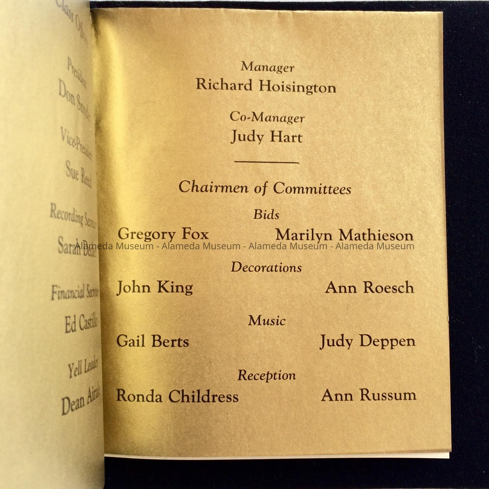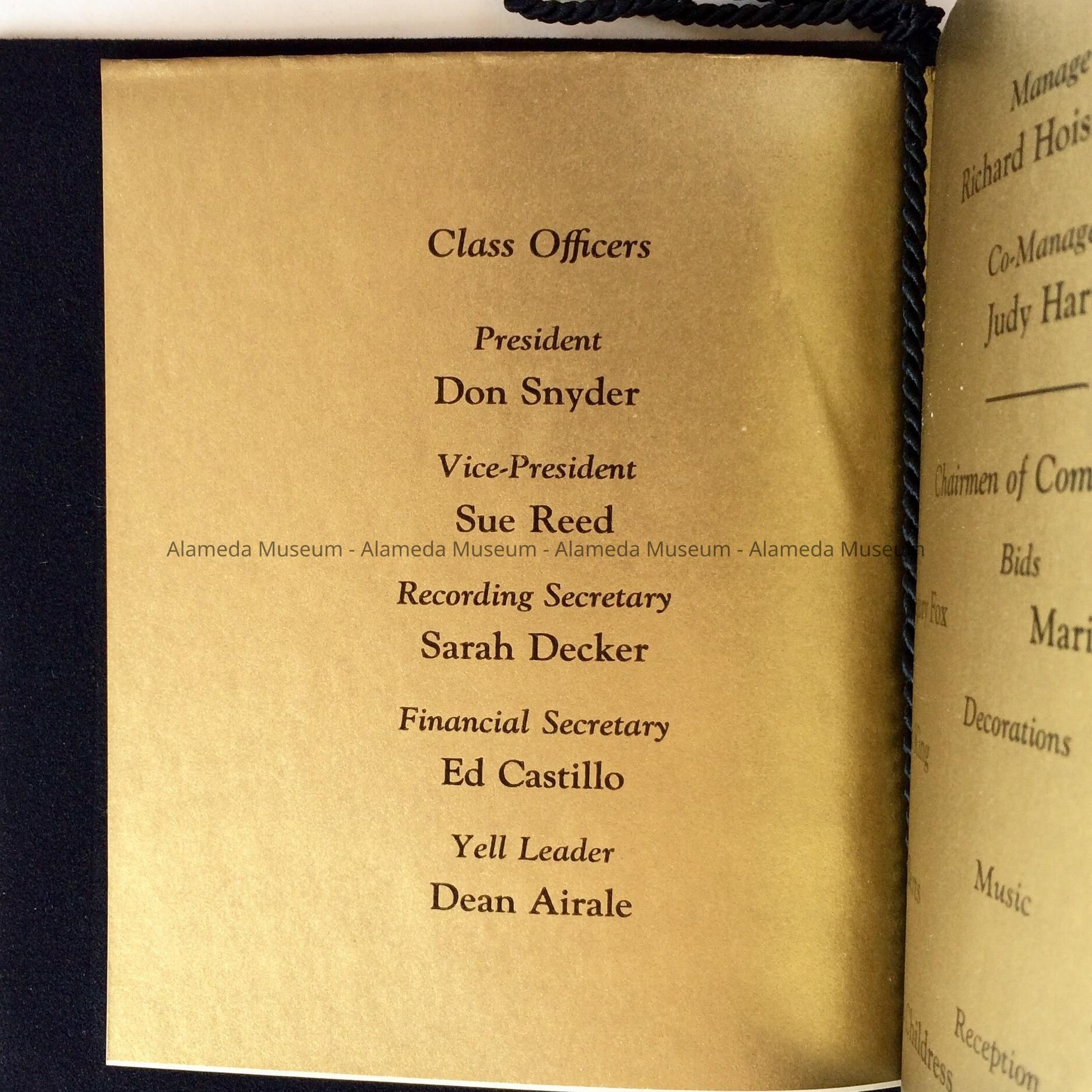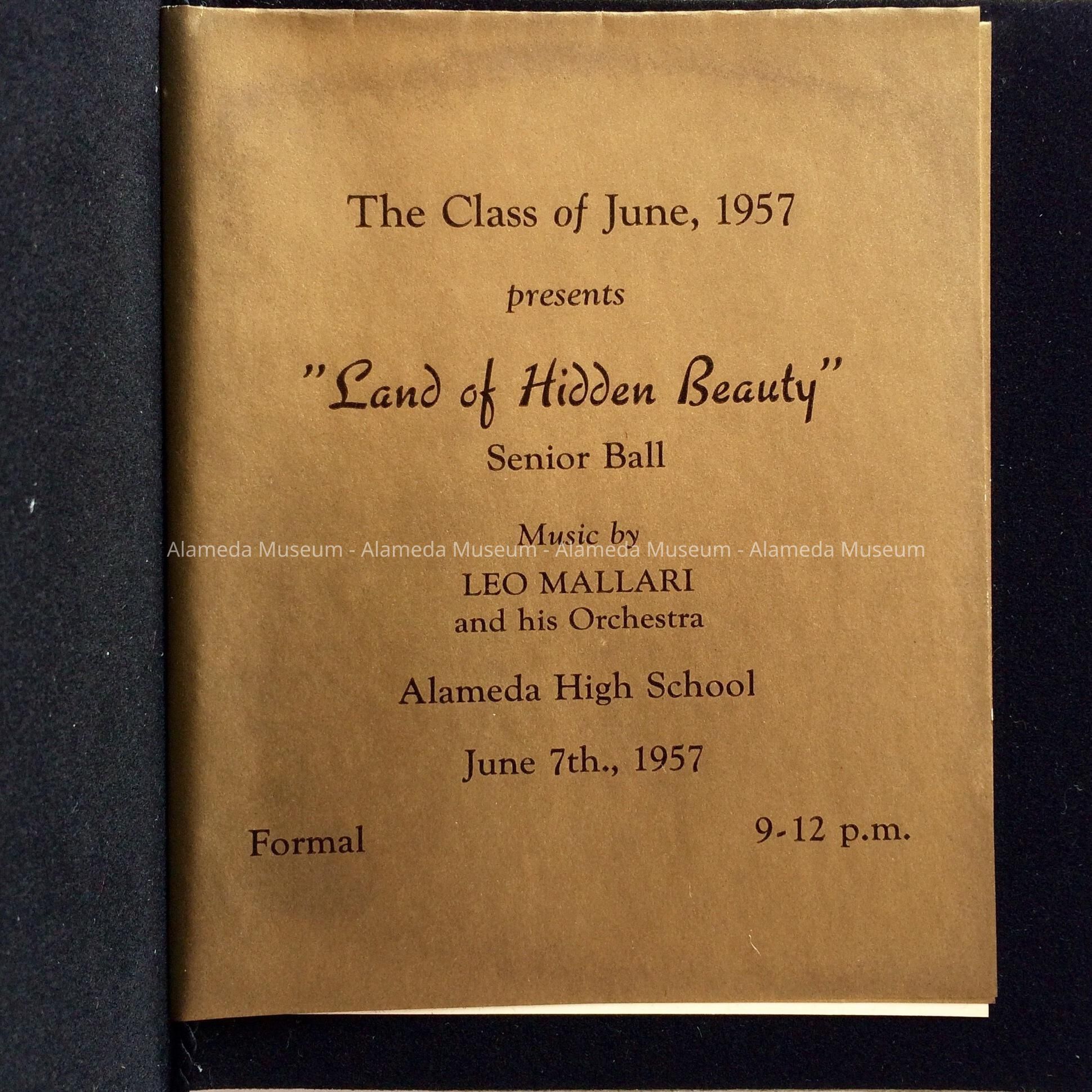 DANCE CARD FROM THE SENIOR BALL, CLASS OF JUNE 1957, WHICH WAS HELD IN THE ALAMEDA HIGH SCHOOL.