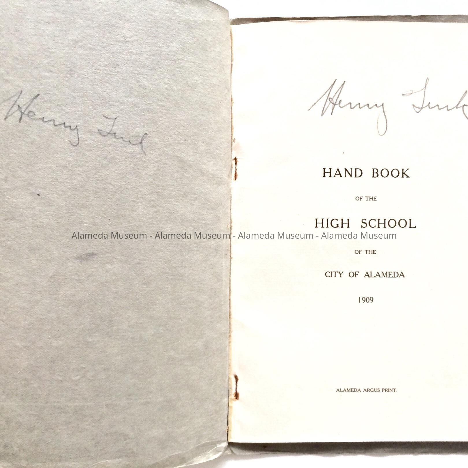 A student handbook issued by the Board of Education describing courses, etc. of the Alameda High School. Donated to Alameda Historical Society prior to 1971, numbered 348, and never catalogued.