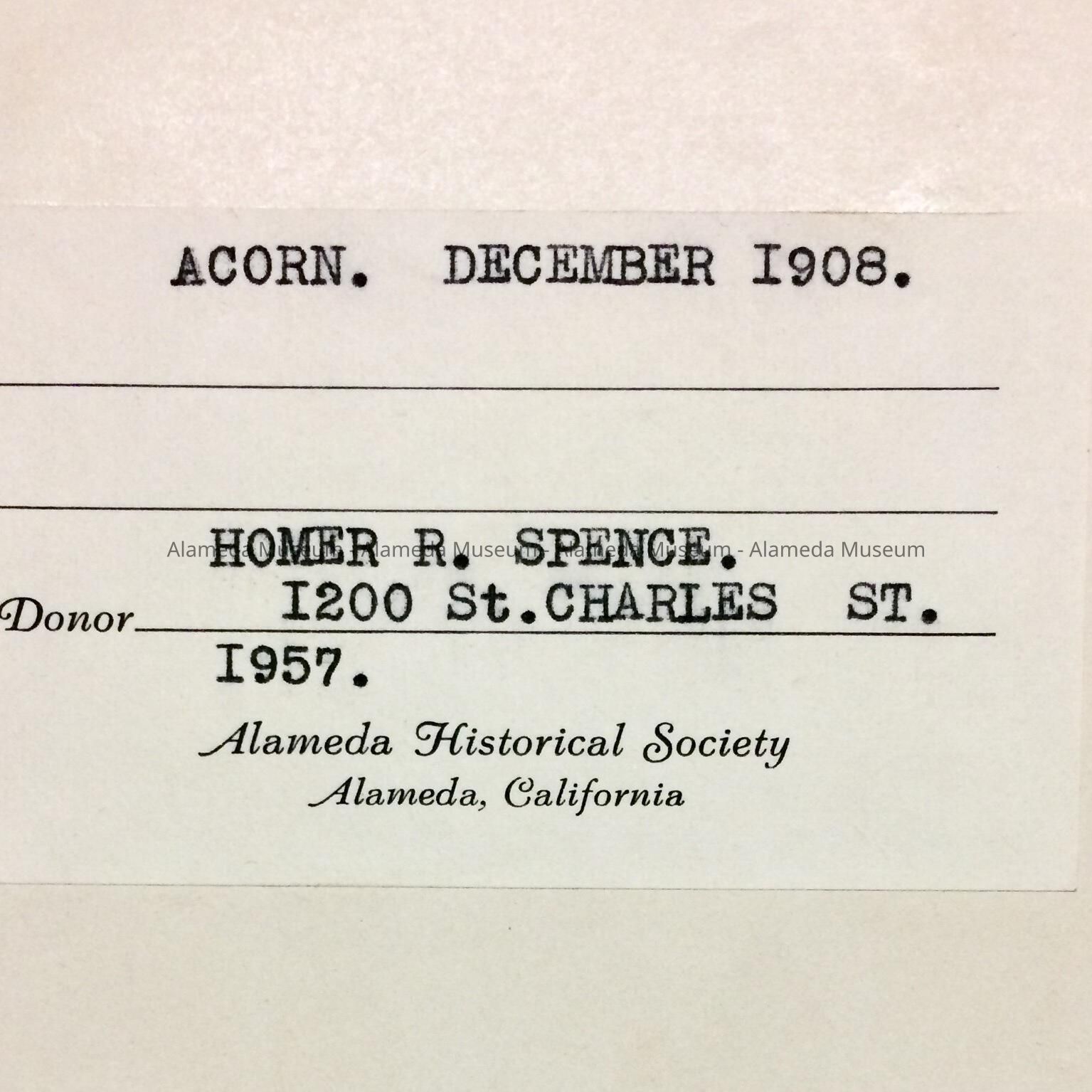 History of Object: December, 1908 edition of the Alameda High School "Acorn."