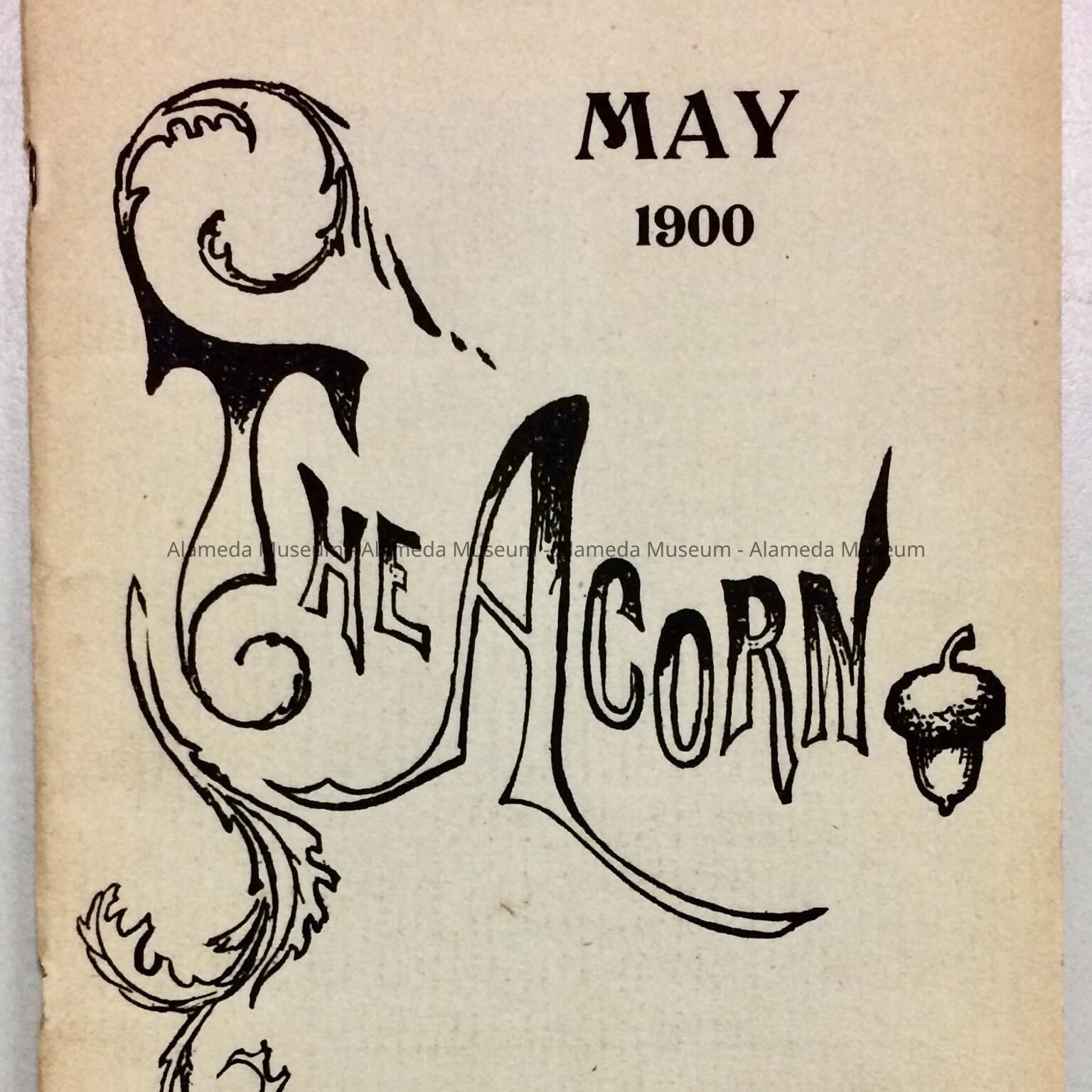 A SOFT-BOUND BOOKLET, COVER OF WHICH HAS A BOLD-PRINTED CAPTION, "THE ACORN - MAY 1900," IN BLACK-COLORED TYPE ON A GREY-COLORED BACKGROUND.