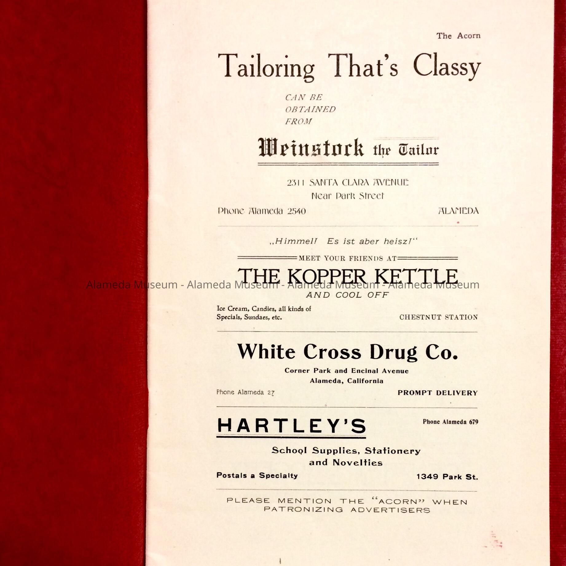 History of Object: September, 1908 edition of the Alameda High School "Acorn."